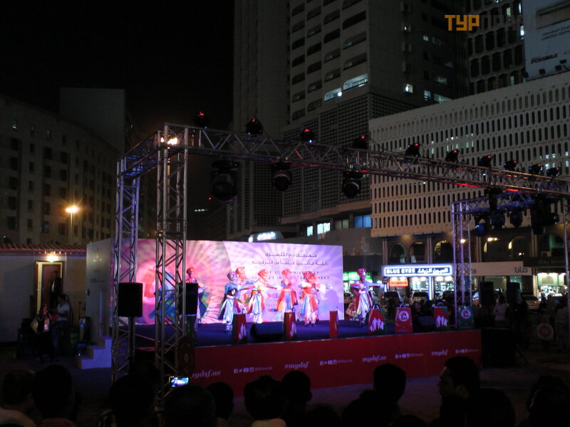 Tak się zł oż ył o, ż e trafiliś my do Dubaju podczas festiwalu zakupó w, gdzie każ dy kupują cy w uczestniczą cych w nim sklepach mó gł codziennie wygrać kilogram zł ota, a w finale luksusowego Rolls-Royce'a lub 20 kg. zł oto. Echa tego widać był o w cał ym mieś cie w reklamach zewnę trznych i ró ż nych wystę pach artystó w. Był y też zespoł y z Rosji.