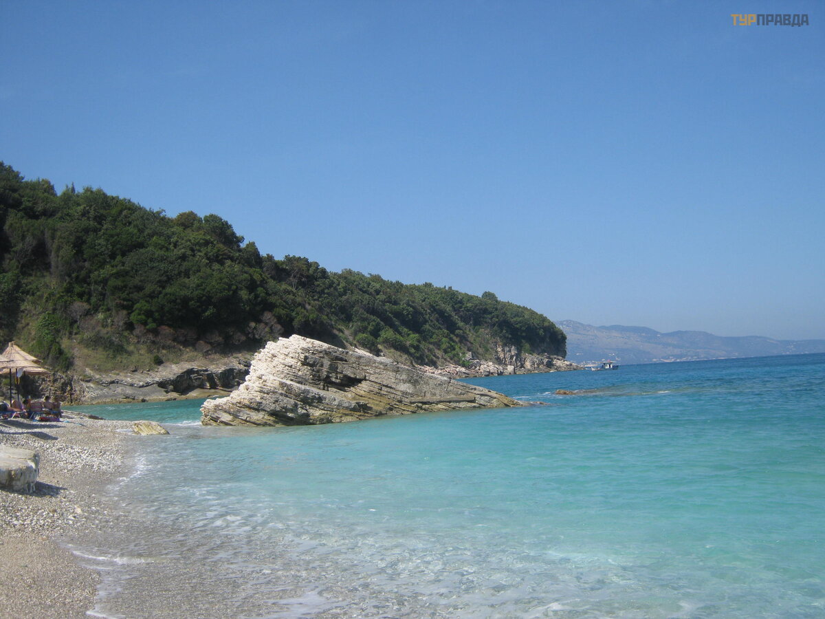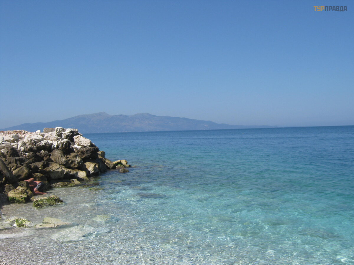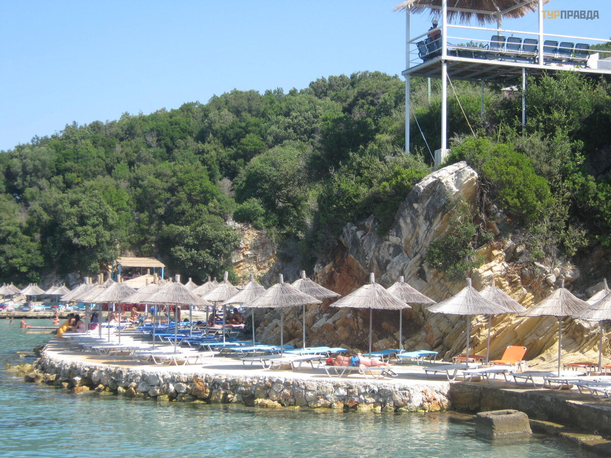 A trzecią plaż ę polecił a nam Ghenta - Zwię dł e drzewo (Pema thater - jeś li oczywiś cie poprawnie przeanalizował em jego pismo odrę czne). Ta plaż a znajduje się za Ksamil, zaledwie 1.6 km od Korfu. Wydaje się też być jak piasek, ale Bó g wie.