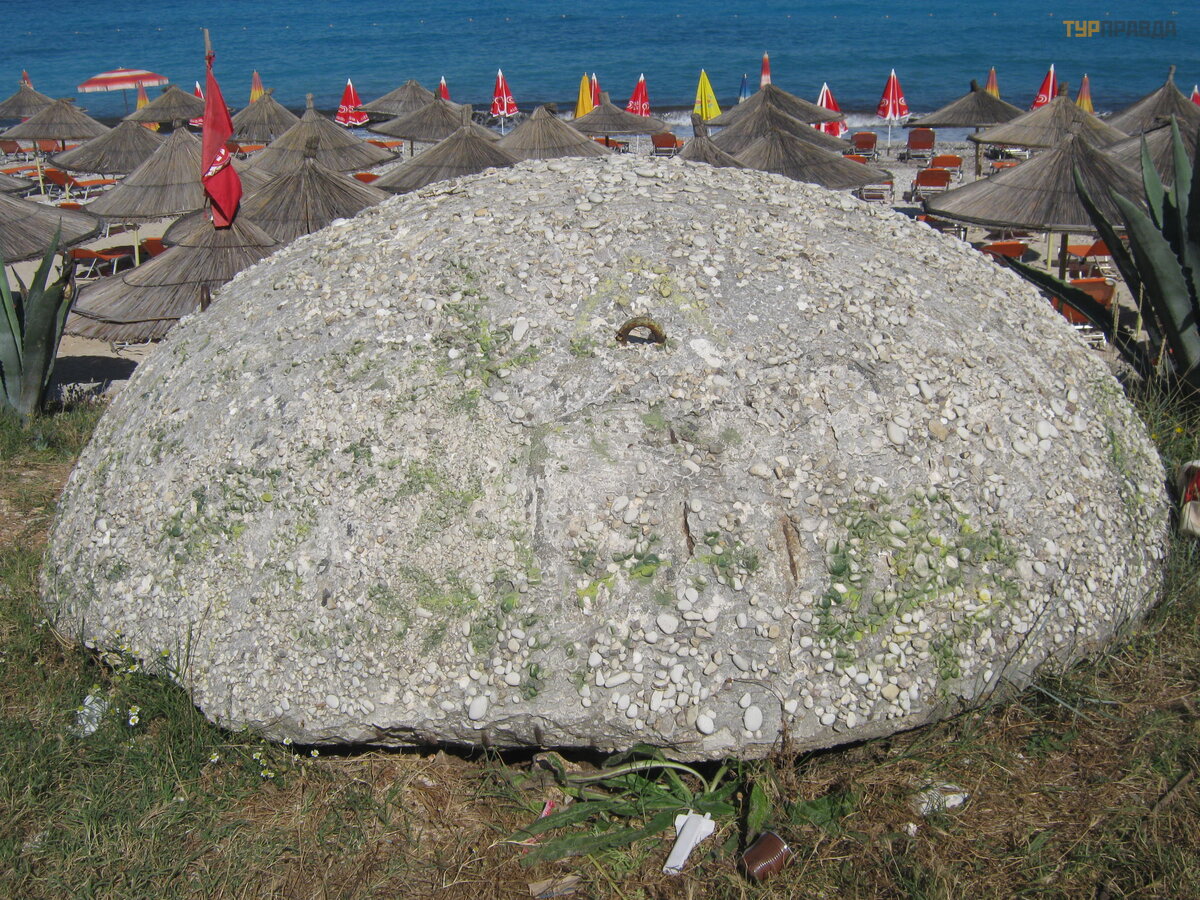 Na tej plaż y po raz pierwszy zobaczyliś my z bliska sł ynny albań ski bunkier.