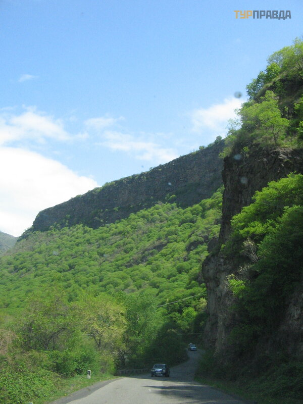 Droga z Ashtarak biegnie wzdł uż rzeki Kasakh, któ ra wpada do wą wozu, daleko poniż ej po prawej stronie drogi. Zatrzymaliś my się przy dwó ch klasztorach stoją cych na klifie. Wą wó z jest niesamowity. Na rzece znajduje się zbiornik wodny Aparan. Po przeciwnej stronie wznosi się pasmo Tsaghkunyat.