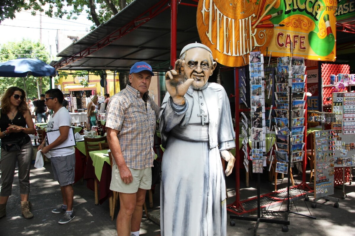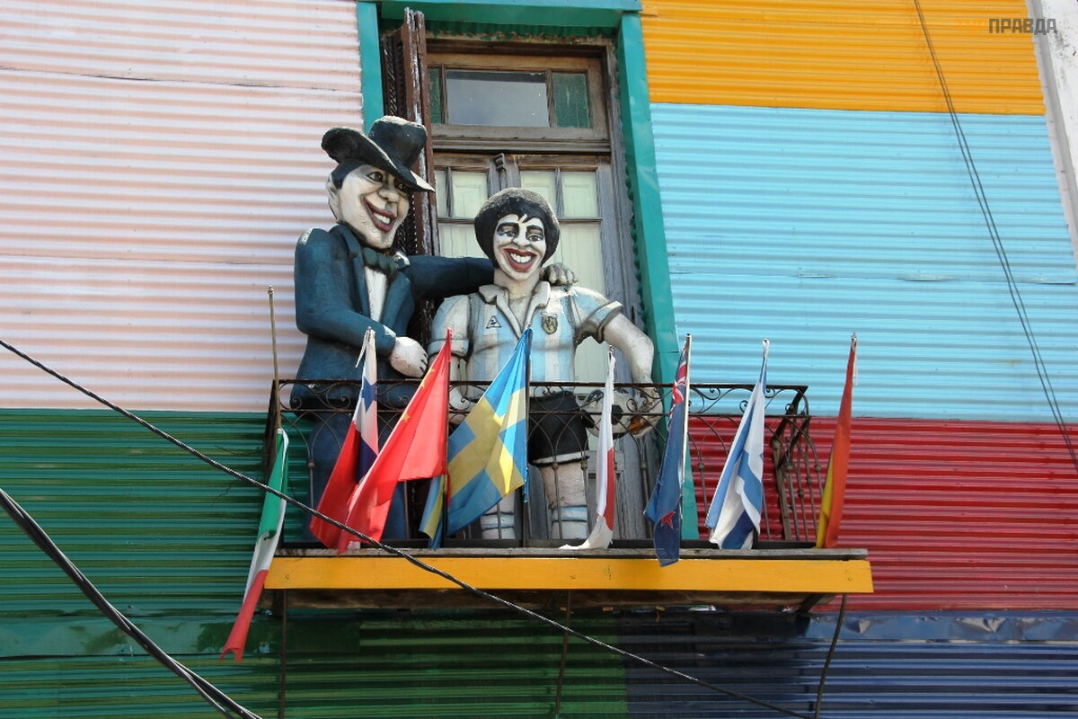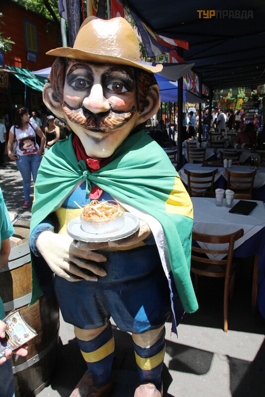 Dzielnica La Boca nazywa się po rosyjsku „Usta”. Teren jest duż y, ponury, brudny i agresywny. Kiedy miał em jechać do tego sł ynnego obszaru przestę pczego, personel hotelu odwió dł mnie i przestraszył niebezpieczeń stwem, ale poszedł em. Któ rych nie dał o się unikną ć . Paradoks: La Boca to jeden z najbardziej znanych zabytkó w miasta, bę dą c jednocześ nie jednym z najbardziej niebezpiecznych i prestiż owych obszaró w! La Boca to okolica. A miejscem, do któ rego przywoż eni są turyś ci, jest niewielki skrawek dzielnicy La Boca, któ ra nazywa się Caminito. Moż na go przetł umaczyć jako „Utwó r”. To niewielka ł ata przeznaczona wył ą cznie dla turystó w. Caminito w ogó le nie oddaje atmosfery cał ego obszaru La Boca. Sami mieszkań cy Buenos Aires nie lubią tego obszaru i starają się nie chodzić tam na spacery i rekreację . W okolicy znajduje się wiele kolorowych domó w. Obszar ten był kiedyś terenem portowym, a ż eglarze, zgodnie z nieznaną marynarską tradycją , starali się pokryć swoje domy metalowymi pł askorzeź bami i pomalować je wielobarwną farbą . Zwykł y zestaw pamią tek z Argentyny. Zaskakują ce jest to, ż e zawsze sprzedaje się tutaj rosyjskie lalki gniazdują ce. Matrioszka w Argentynie od dawna jest pamią tką narodową . Sprzedawane wszę dzie. Na począ tku Florida Street jest nawet kilku sprzedawcó w wył ą cznie matrioszek. Tak, Argentyń czycy wiedzą , ż e to „rosyjska lalka”, ale tutaj nazywa się „mamuszka” (najwyraź niej matrioszka jest trudna do wymó wienia. . . )
