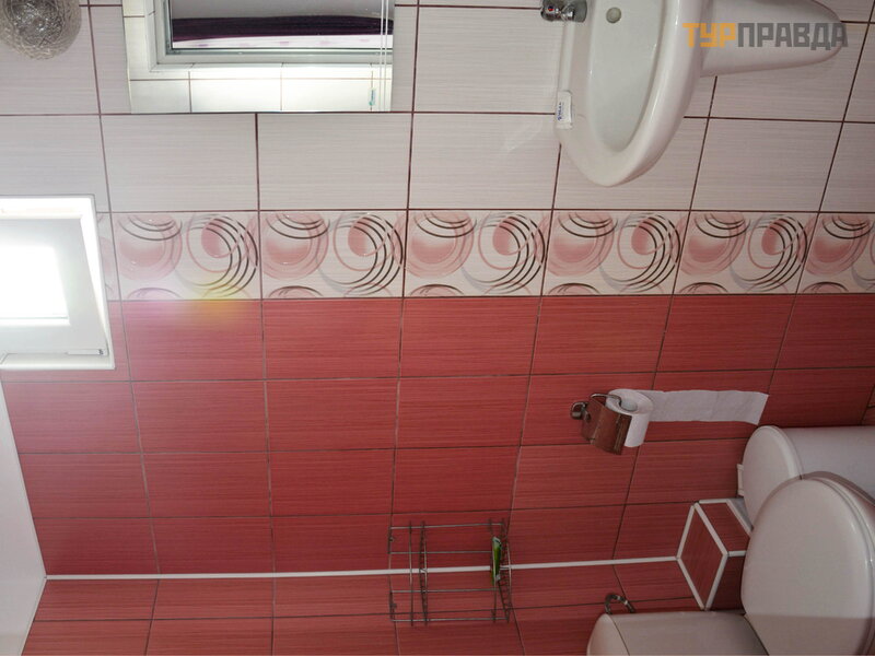 Jedynym rozczarowaniem w tym wspaniał ym pokoju jest ł azienka. Jest tak mał y i niewygodny, ż e czasami zastanawiasz się , jak ludzie tam pasują . Odpł yw wody znajduje się bezpoś rednio w podł odze, a ponieważ woda nie ma czasu spł yną ć szybko, musisz znosić kał uż ę mydł a pod prysznicem. Oczywiś cie nie ma kurtyny ani bariery, wię c rozpryski wody są wszę dzie, co ró wnież trzeba znosić . Jednak szybko przyzwyczailiś my się do tej niedogodnoś ci i przestaliś my zwracać na nią uwagę .