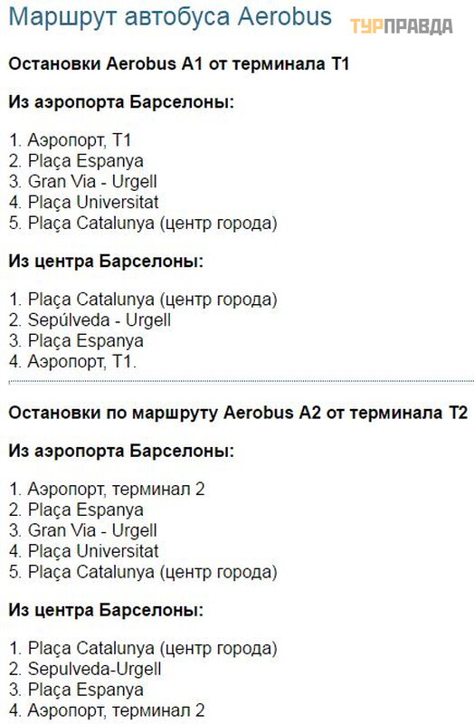 Gł ó wne przystanki autobusowe w centrum Barcelony znajdują się przy Plaç a Catalunya i Plaç a Espanya, któ re są gł ó wnymi wę zł ami przesiadkowymi. Na lotnisku w Barcelonie przystanki znajdują się przy każ dym z terminali. Oba terminale obsł ugiwane są przez ró ż ne autobusy Aerobus.