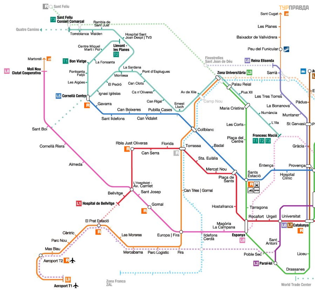 Stacja metra z terminala T2 znajduje się za wejś ciem do stacji Renfe, bę dzie tam znak w dó ł . Naprzeciw terminali znajduje się ró wnież punkt informacyjny. Mó wić po angielsku. Tam moż esz bezpł atnie poprosić o mapę miasta, mapę metra. A takż e od razu kupiliś my tam bilety na autobus turystyczny po mieś cie Bas Turistik. Nie moż na był o kupić kart podró ż nych T10 na 10 przejazdó w, funkcja nie dział ał a. Wię c jeś li czegoś nie rozumiesz, nie wahaj się zapytać .
