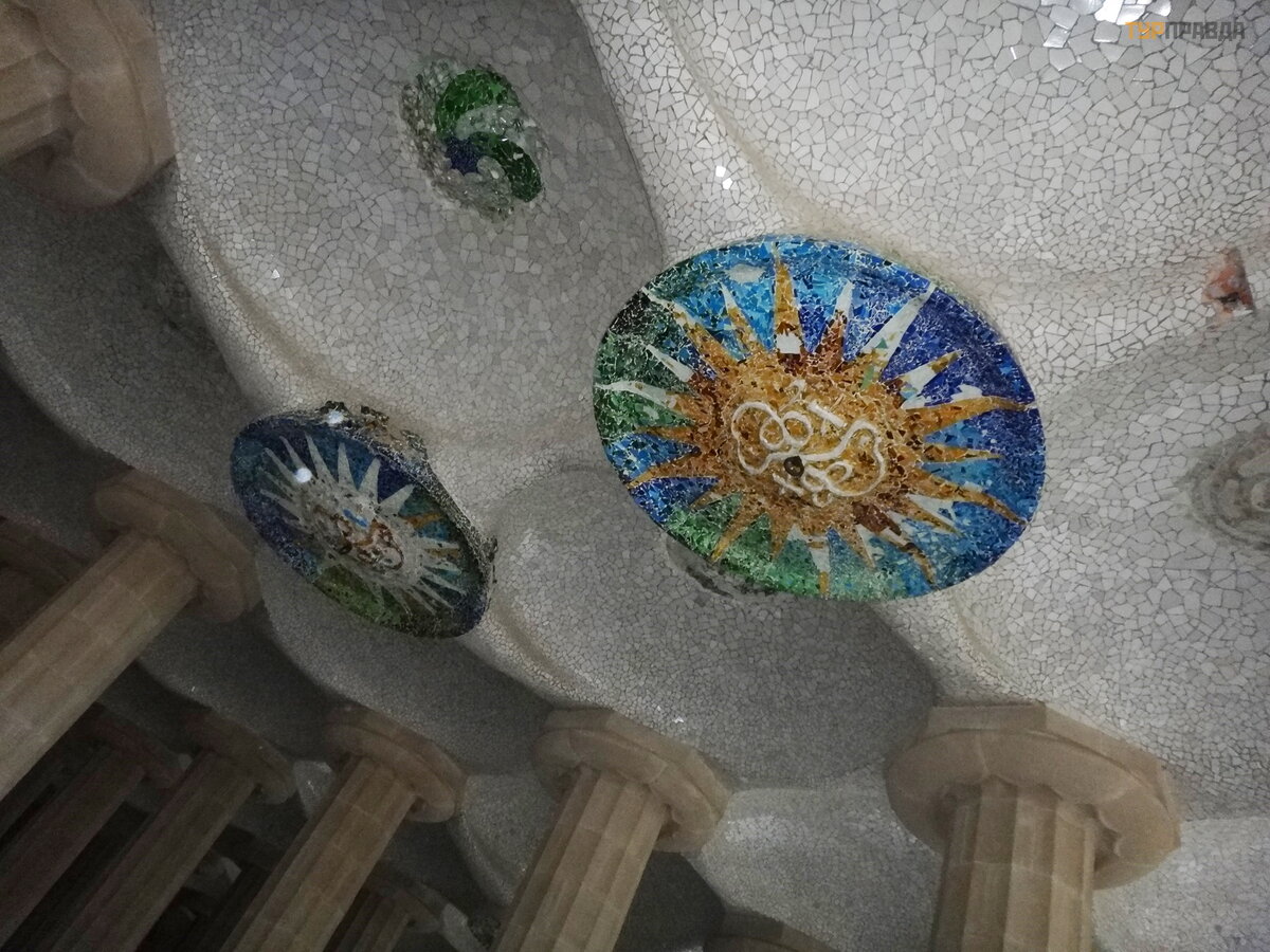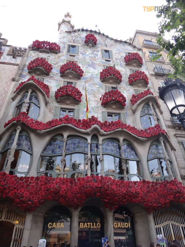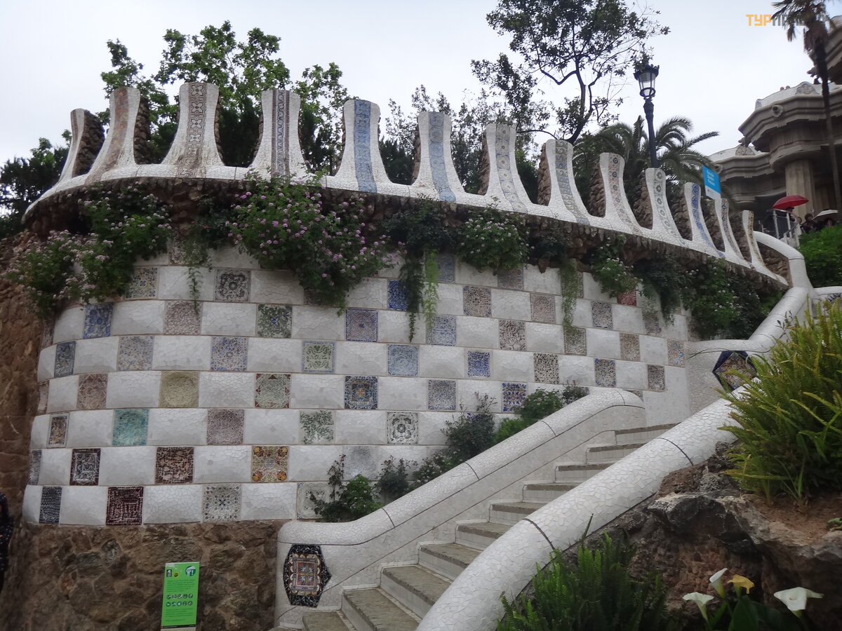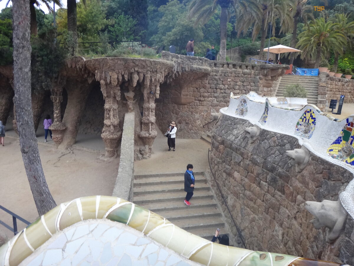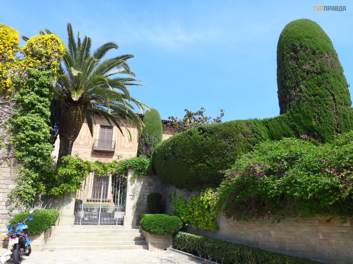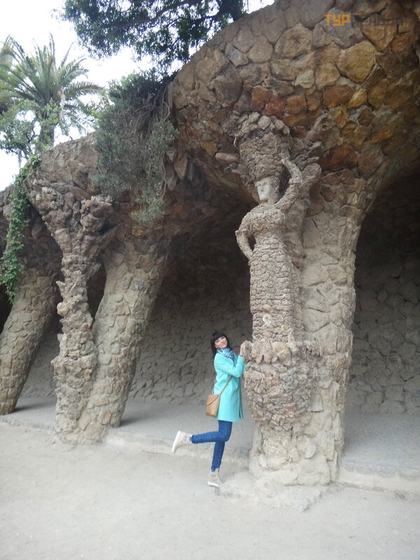 Palau Real lub Pavilions Gü ell to miejsce dla mił oś nikó w muzeó w. Znajdują się tu dwa muzea - ceramiki i sztuki uż ytkowej, w ogó le mebli. Nie chodziliś my do muzeó w, jest też zniż ka wedł ug ksią ż ki Bas Touristik. Klikną ł na tle niezwykł ej bramy, któ rej inicjatorem był kto ? ? Oczywiś cie, Gaudi! Wcześ niej smok na bramie poruszał się za pomocą mechanizmu, otwierał i zamykał pysk.