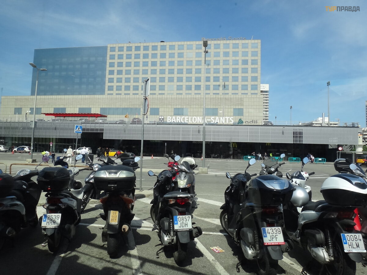 Estacio Sants (stacja Sants) to duż a stacja kolejowa znajdują ca się na począ tku Avenida Roma (Avenida Rzymska). Ma wiele peronó w i kas biletowych. Dlatego zaleca się przybycie wcześ nie, aby tak ż e masz wystarczają co duż o czasu, aby znaleź ć potrzebną platformę.