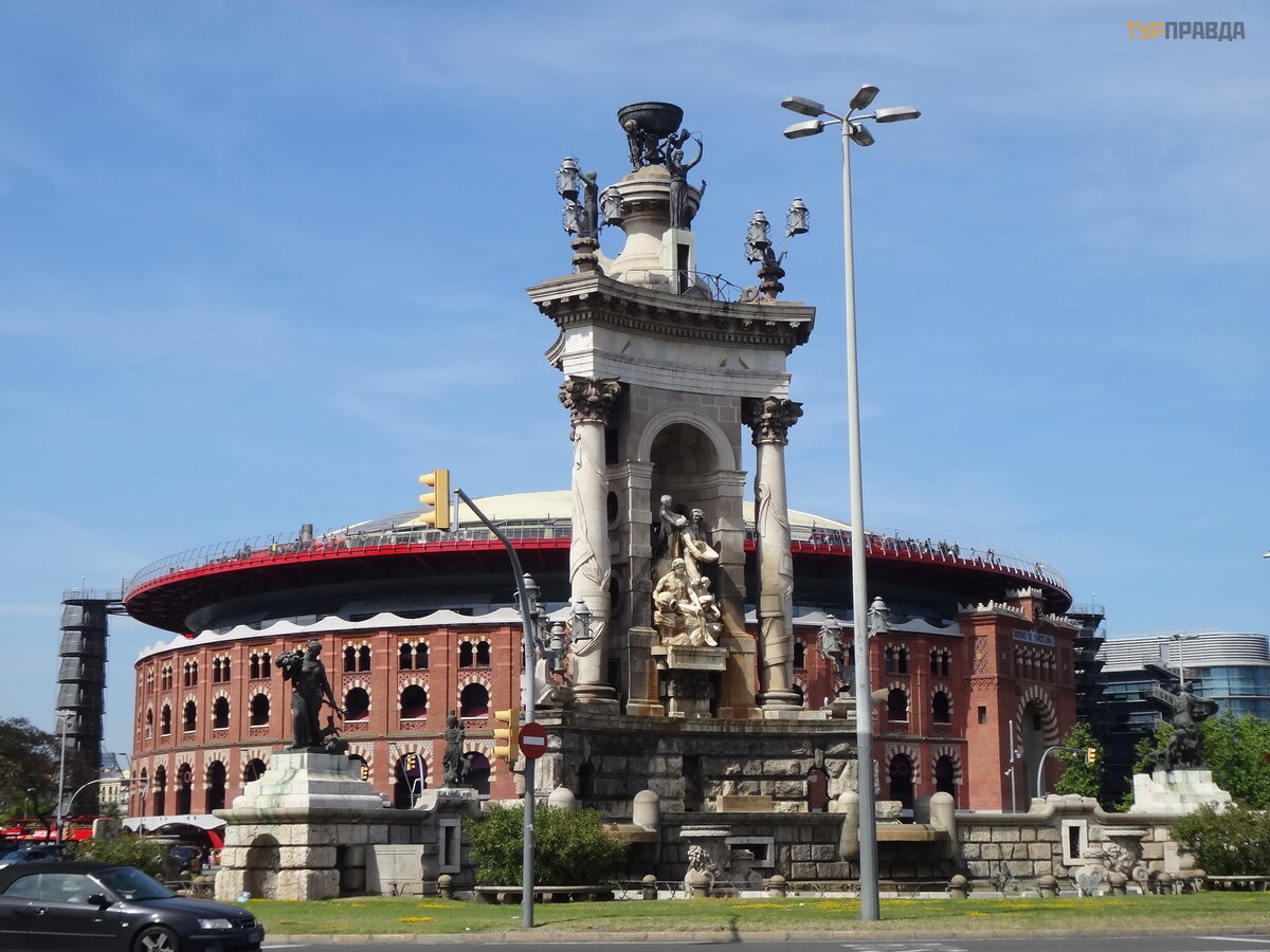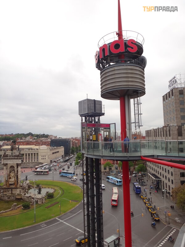 Obok placu znajduje się centrum handlowe Arena w dawnym budynku do walk bykó w, któ ry jest obecnie zabroniony. Dobre widoki są z centrum handlowego, a dokł adniej z okrą gł ej platformy widokowej znajdują cej się na dachu. Tam podnosi się zewnę trzna winda lub moż esz wdrapać się na arenę i udać się na dach. Osobiś cie podobał o mi się znacznie bardziej niż Plaza Catalunya.