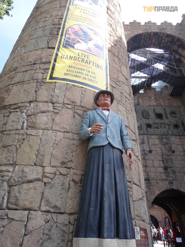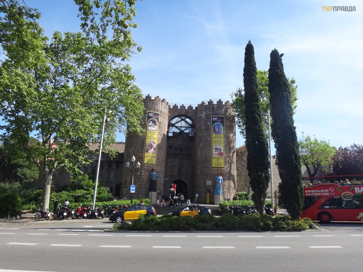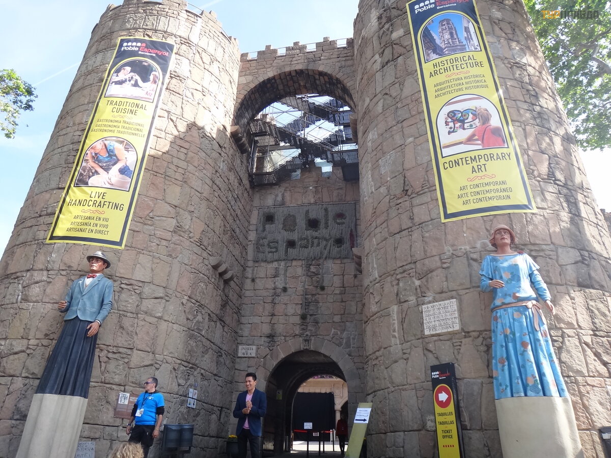 Wieś hiszpań ska - Poble Espanyol - wię kszoś ć z nich to stare domy, ś wią tynie, klasztory, pał ace i zamki - naturalnej wielkoś ci kopie sł ynnych arcydzieł architektury. Ale są też mniejsze odpowiedniki.