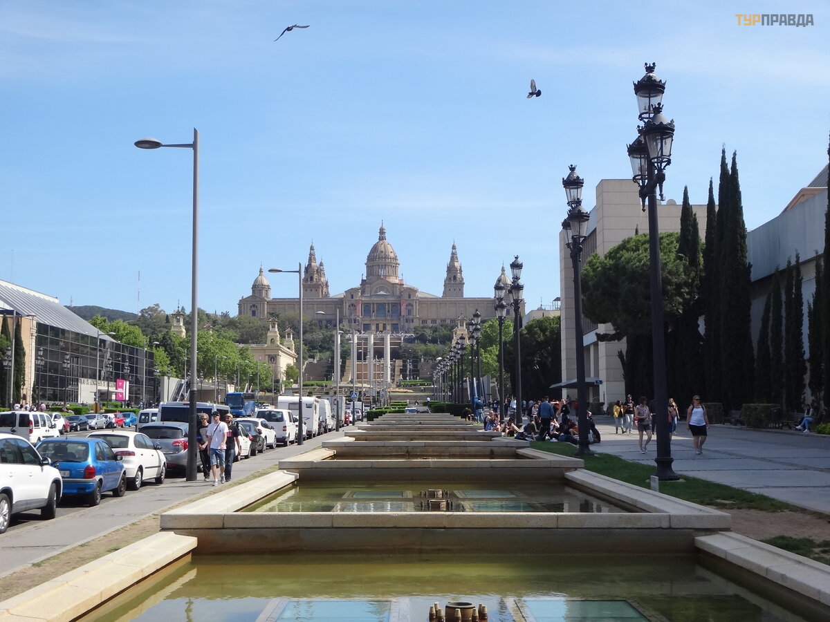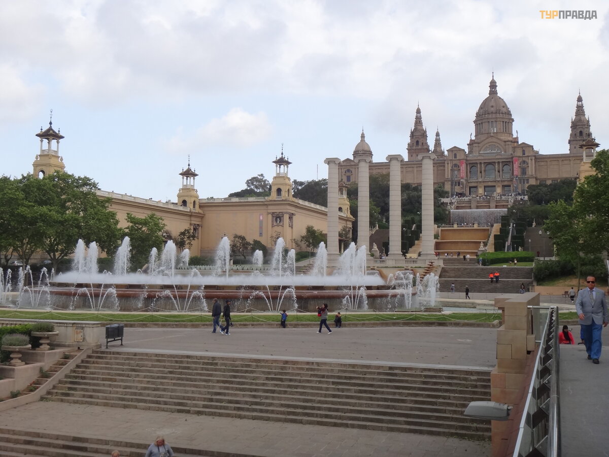MNAC – Narodowe Muzeum Sztuki Katalonii – bardzo pię kne zaró wno blisko, jak i daleko. Dobrze wyglą da z Plaza de Españ a. Ze wszystkich stron jest dobrze. Nie wszedł do ś rodka.