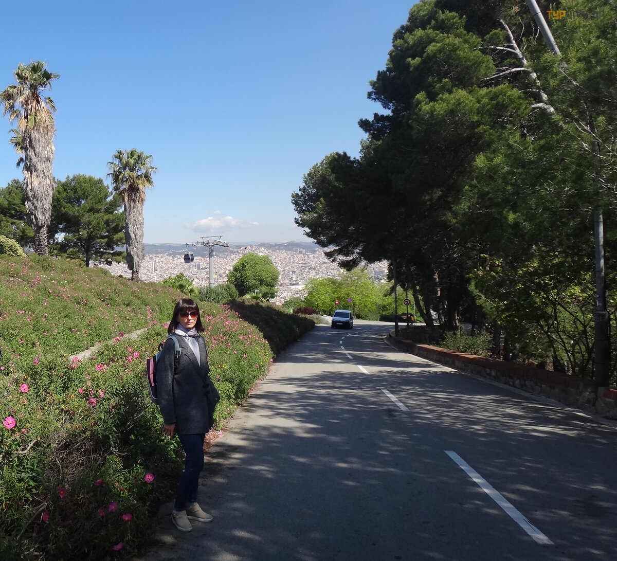 Kolejka na Montjuic. Zatrzymaj się przystanek autobusowy obok niego. Jechaliś my sami wcześ nie rano. W pobliż u wyjś cia ze stacji metra Parallel. Zabraliś my bilety do twierdzy. Znowu wedł ug ksią ż ki Bas Touristik – zniż ka.