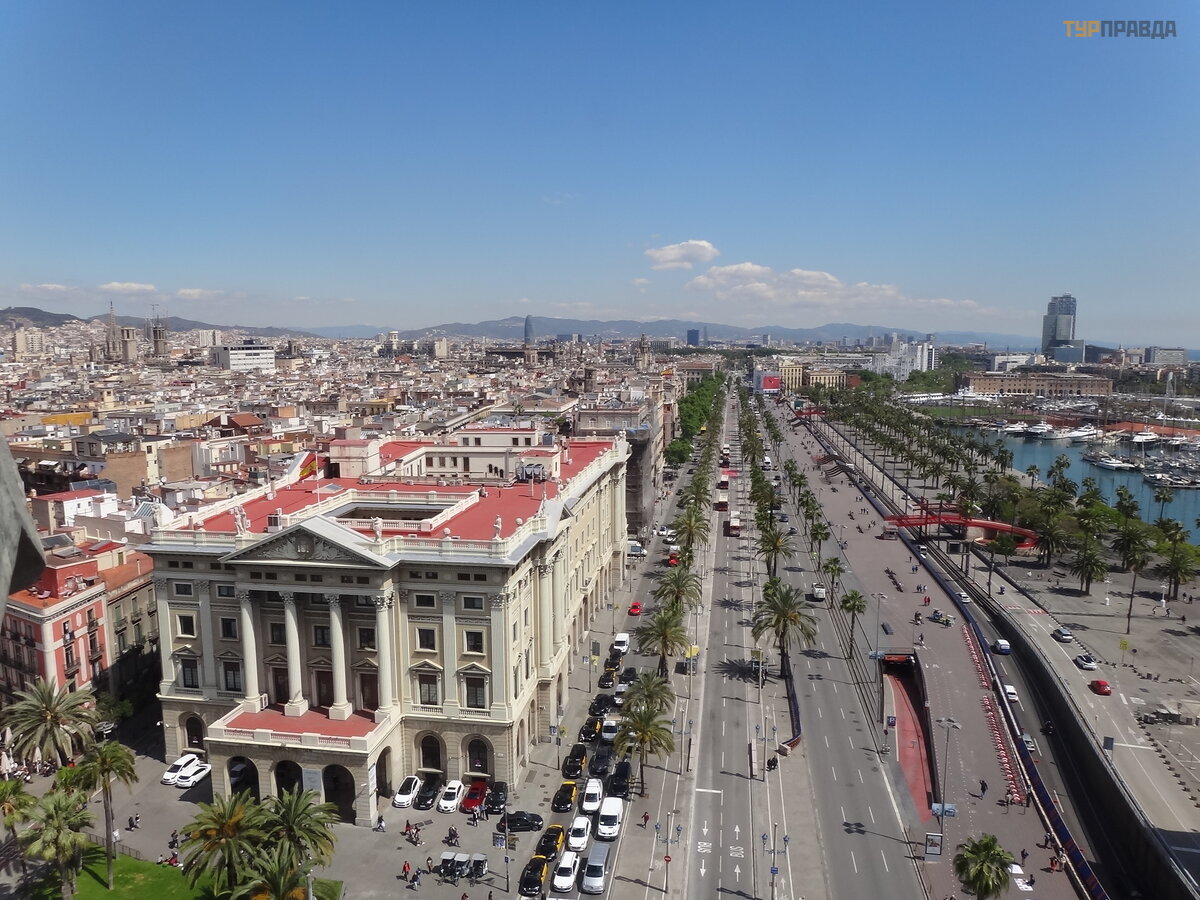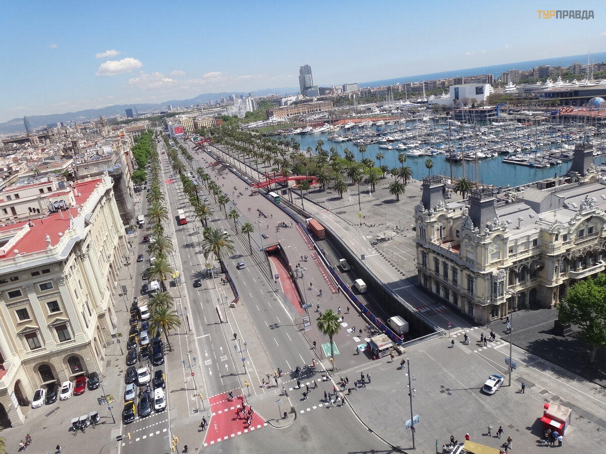 Ale pomnik Kolumba jest bardzo interesują cy i warty wspię cia. Oferuje doskonał ą panoramę promenady i deptaka La Rambla. Winda kosztuje 6 euro. Bilety moż na kupić wewną trz pomnika, jest bar i sklepy. Taras widokowy jest mał y, trudno go przecisną ć . Winda z towarzyszą cym pracownikiem. Kiedy chcesz zejś ć w dó ł , naciskasz przycisk.