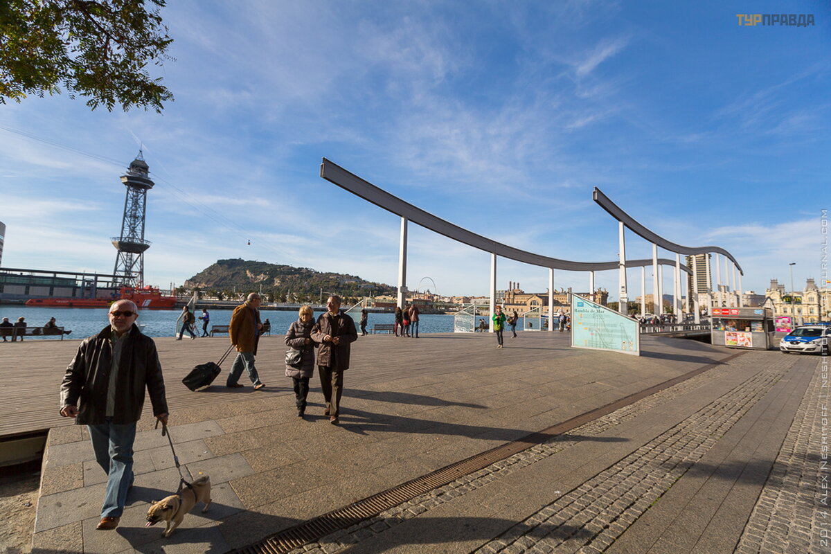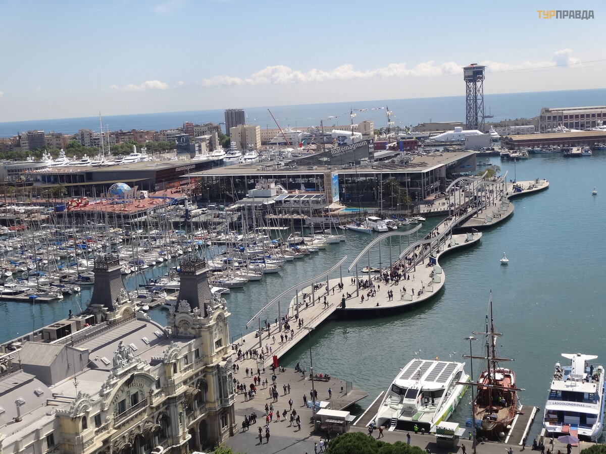 Port „Vell” po kataloń sku oznacza „stary port” i jest jednym z najstarszych obszaró w Barcelony. Być moż e najciekawszym miejscem w tym porcie, któ ry stał się motywem wielu lokalnych pamią tek, jest system podwieszanej kł adki dla pieszych Rambla de Mar, któ ra kontynuuje linię Rambla, ale już nad morzem. Mosty są elegancko ozdobione stalowymi kanał ami, wygię tymi w formie fal, podkreś lają cymi morską przynależ noś ć budynku.