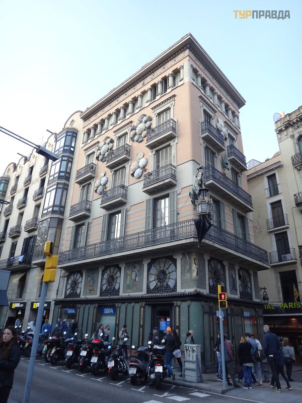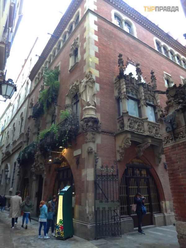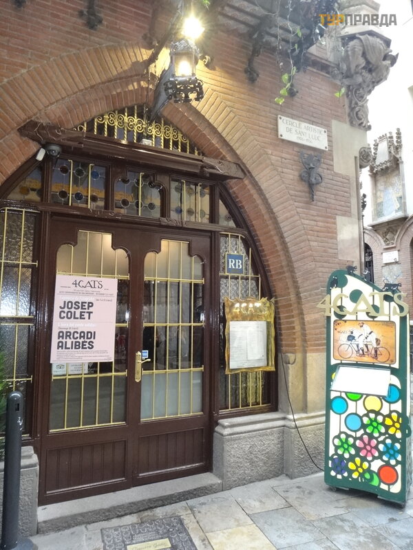 Pierwszym przystankiem był sł ynny kabaret artystyczny „4 koty”, w któ rym lubili siedzieć Gaudí i Picasso. Z Via Laietana musiał em skrę cić w prawo i iś ć wą ską uliczką do malowniczego domu, w któ rym mieś cił się kabaret.