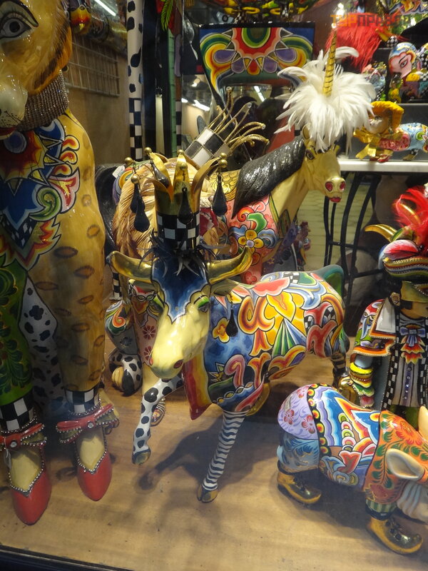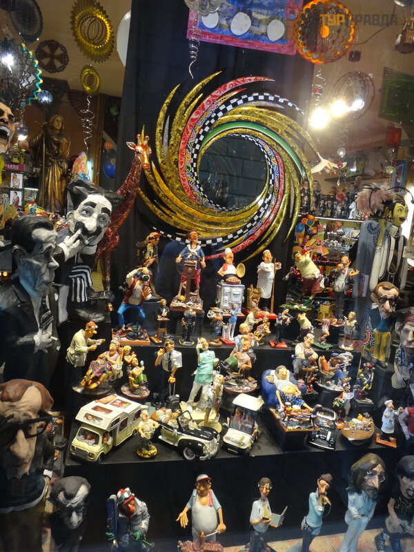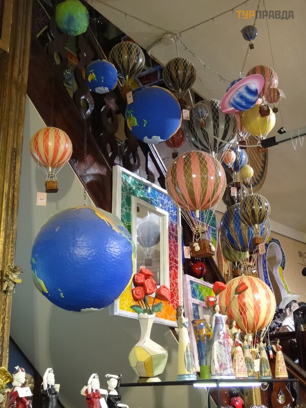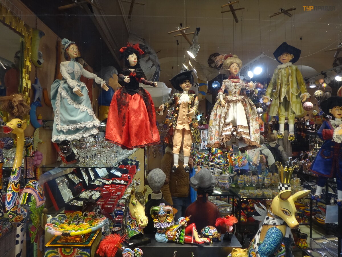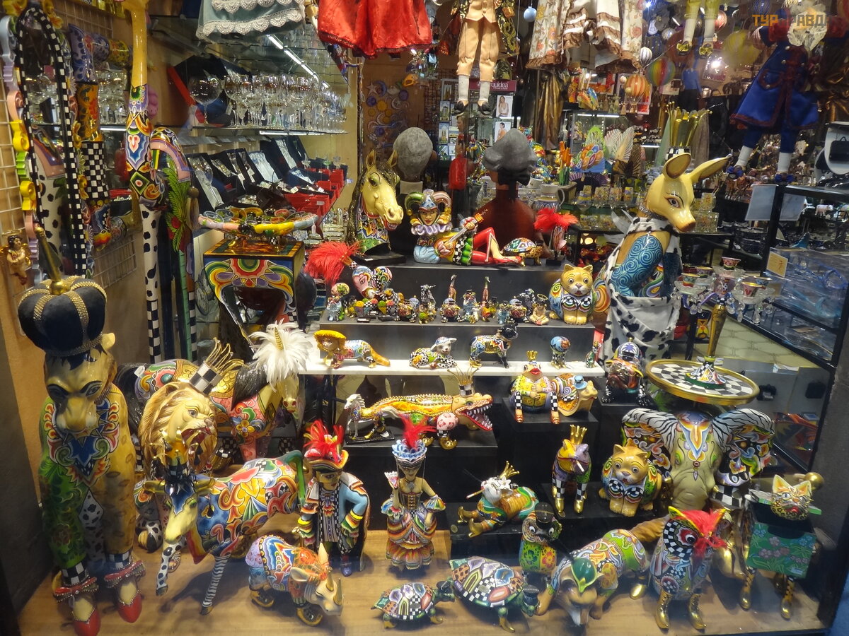 A za mostem uwagę przykuwają jaskrawe kolory sklepu z pamią tkami z przeró ż nymi rzeczami