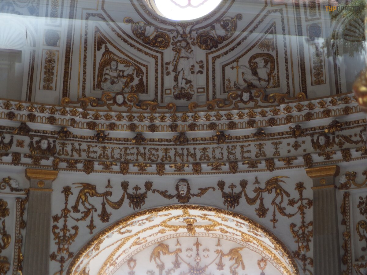 Wewną trz znajduje się ciekawa dekoracja w stylu manieryzmu.