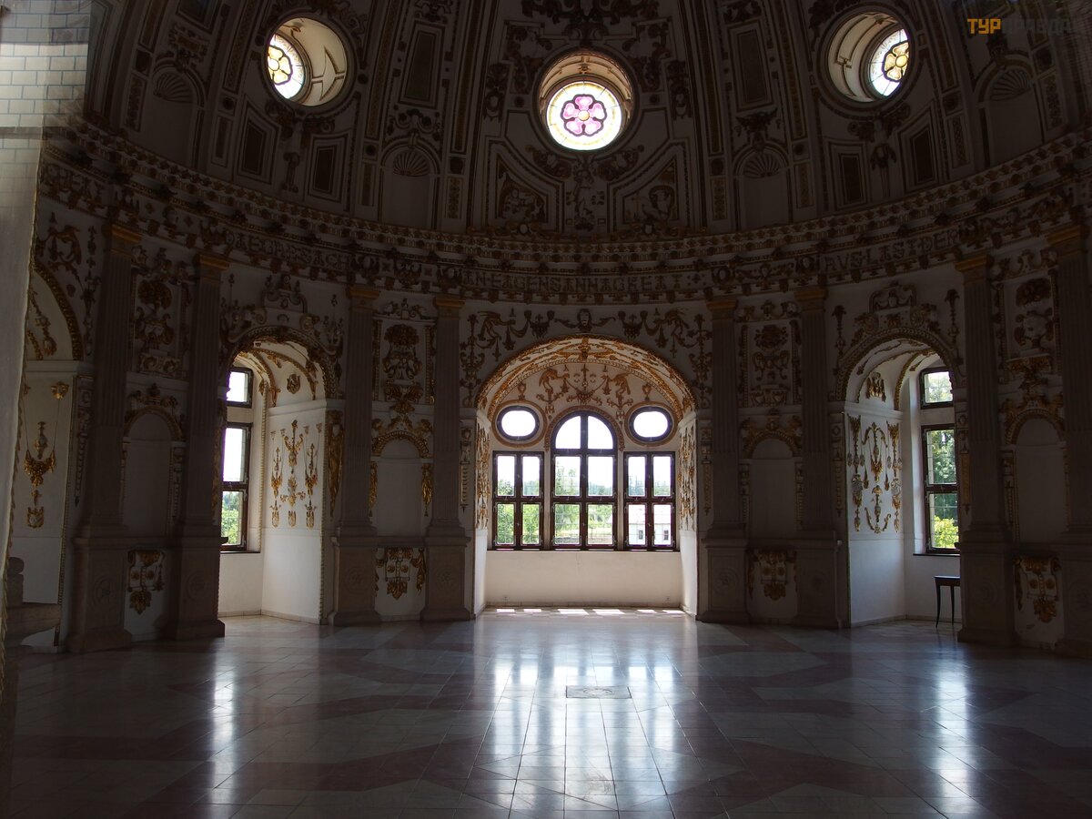 Przeczytaj historię zamku powyż ej: najpierw był a wież a, potem zamek gotycki, potem wł aś ciciel pojechał do Wł och, a wynik ten sam - zamek w stylu renesansowym : ))) Ale jest pię knie - cholera to! Och, zapomniał em, był poż ar. Wię kszoś ć pał acu spł onę ł a. Czę ś ć lokalu został a odrestaurowana w latach 40-tych XIX wieku. I wreszcie pod koniec XX wieku zamek został odrestaurowany.