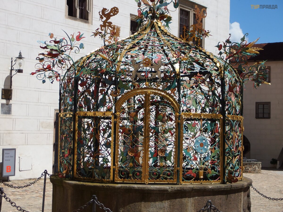 Zamkowa studnia jest ozdobiona taką „wesoł ą ” wielokolorową kratą z począ tku XVII wieku.