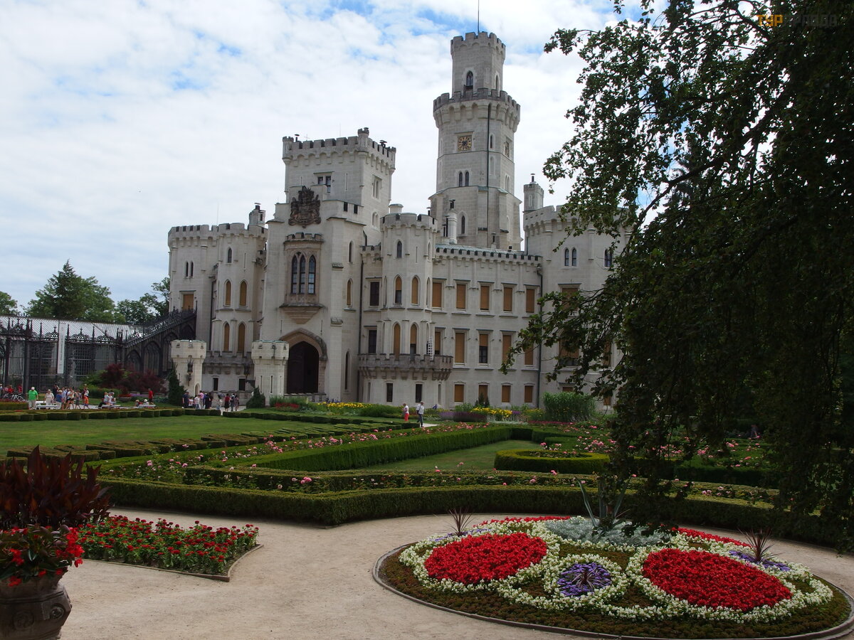 10 km od Czeskich Budziejowic, na wysokim klifie nad Weł tawą , dumnie wznosi się zamek Hluboka nad Vltavou.