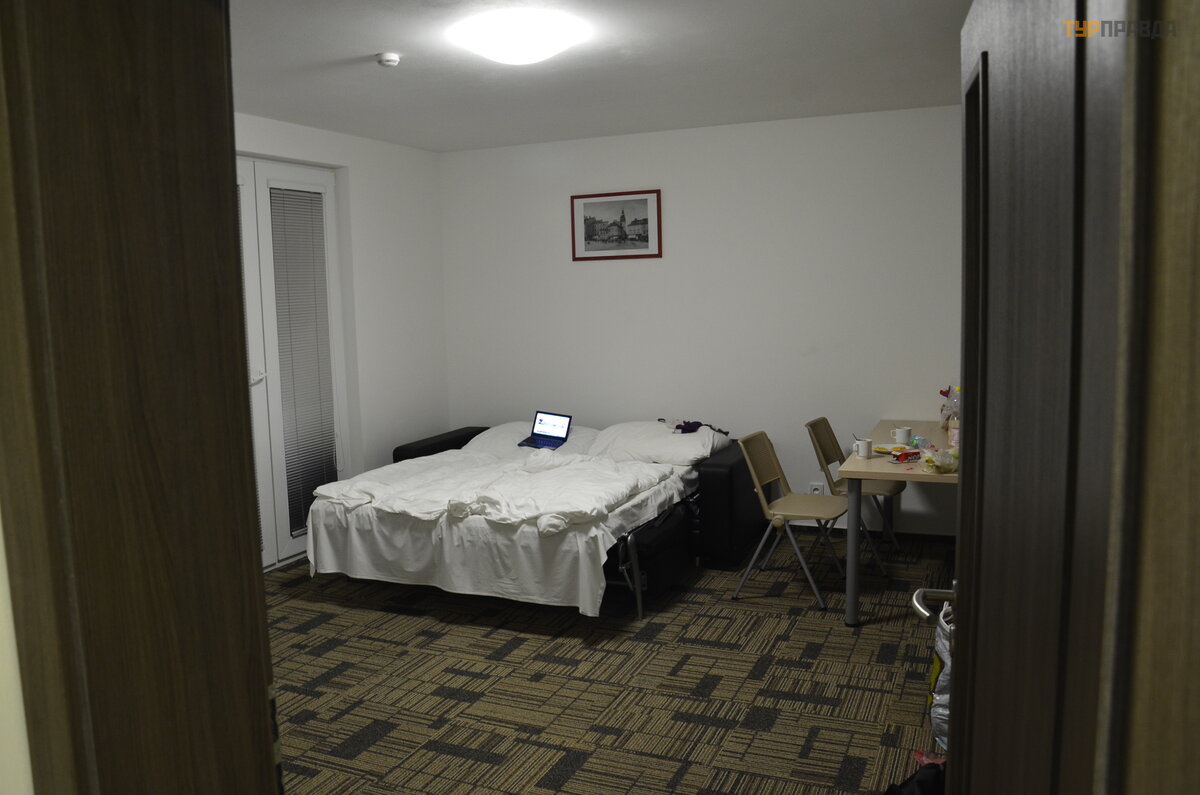 Kiedy wjechaliś my do Brna, na zewną trz był o już ciemno. Poś rodku, na wzgó rzu, stał a katedra, spektakularnie zaakcentowana ś wiatł em. Zostawiają c samochó d przed wejś ciem do zarezerwowanego eFi Hotelu, udaliś my się do recepcji i po 5 minutach moja rodzina wjechał a windą do pokoju, a ja w mię dzyczasie zaparkował em samochó d na zamknię tym parkingu strzeż onym.