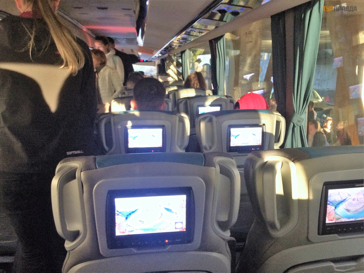 Autobusy są wygodne. Zadeklarowano Wi-Fi, ale w telefonie był a ikona, ale nic nie dział ał o : )). Oferowana herbata kawa, sł uchawki (przesł uchanie).