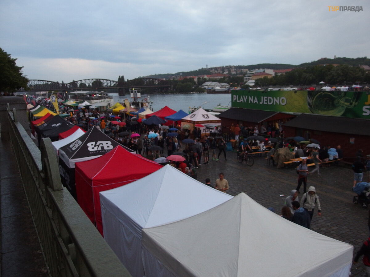 Mę ska poł owa, już wyczerpana historycznymi i romantycznymi informacjami, z zainteresowaniem przyglą dał a się im. Musiał am pilnie wygooglać , ż eby dostać się na to ś wię to ż ycia : ) (wszystko był o ogrodzone i nikomu nie wpuszczano, chociaż przy wejś ciu ludzie tł oczyli się z zainteresowaniem). Okazał o się , ż e bę dzie to festiwal piwa z najlepszych czeskich minibrowaró w, ale wstę p jest bardzo ograniczony – tylko 1200 biletó w, któ re już dawno wyprzedane. Mę ska poł owa ż alu „pł akał a”, ale ratunek zdą ż ył na czas. Dziś na bulwarze Naplavka rozpoczyna się ró wnież festiwal piwa „Piwo na Naplavce”. Wstę p wolny. Hurra…. Patrzymy na mapę , gdzie znajduje się ten cenny nasyp. Jak się okazał o, jest blisko Wyszehradu. Postanowiono (tylko bardzo, bardzo szybko) zobaczyć Wyszehrad i to z poczuciem speł nienia jako turysta na festiwalu.