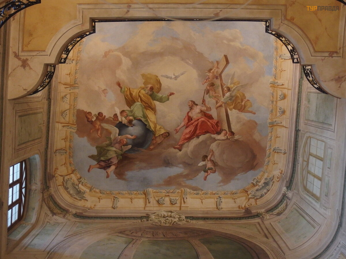 Hrabia chciał „wydobyć ł askę ” u swego cesarza Leopolda I Habsburga i nakazał pomalować salę freskami gloryfikują cymi zwycię stwo nad Turkami w bitwie pod Wiedniem (1683). Nawiasem mó wią c, sam Leopold I nie brał udział u w tej bitwie.