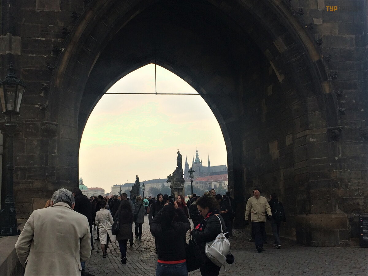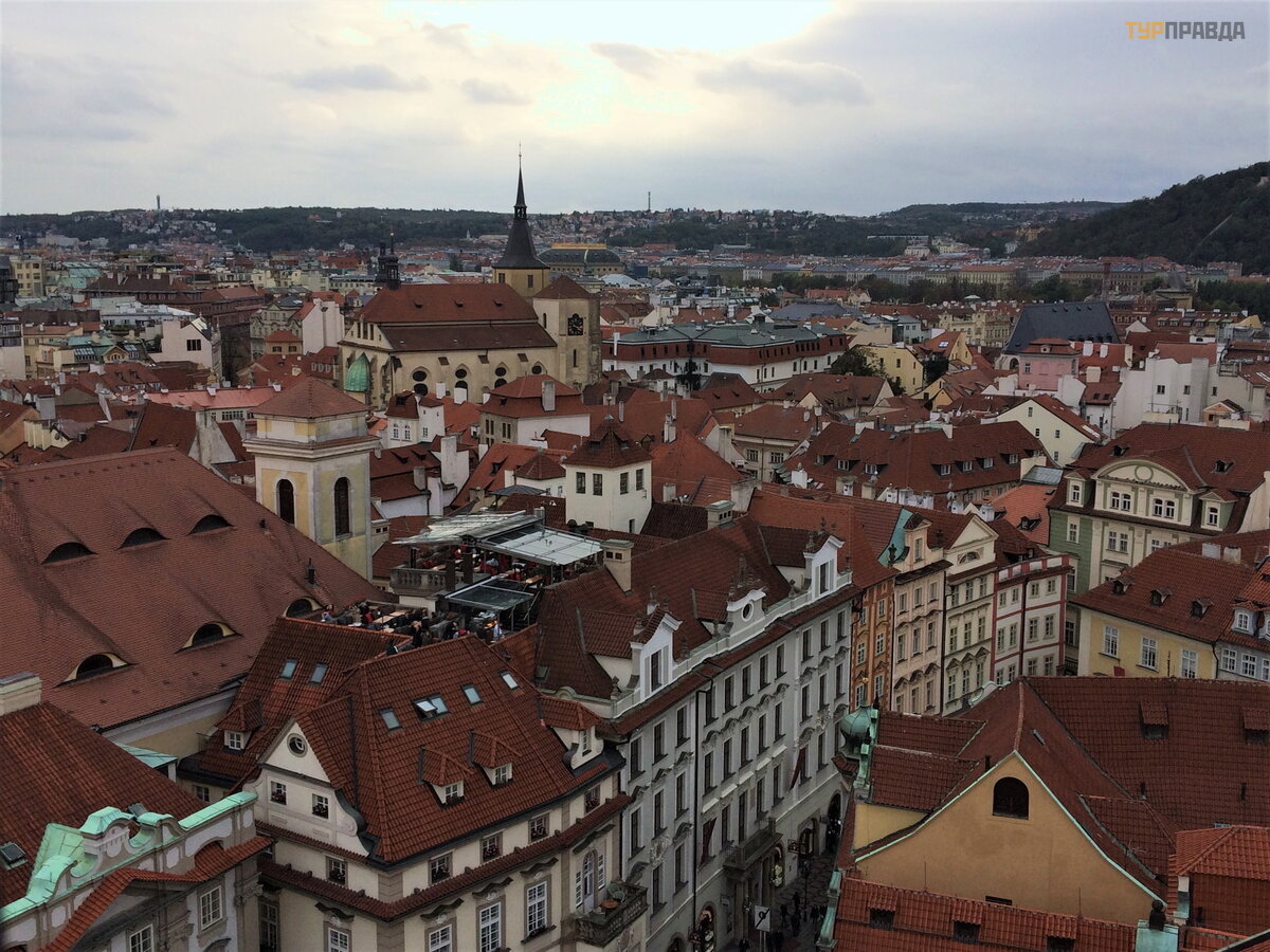 Och, rozkojarzeni, wspię liś my się na wież ę . Oto Praga u naszych stó p!