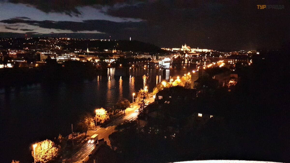 Wł aś ciwie na Pragę moż na patrzeć z wielu miejsc. W Wyszehrad dotarliś my w ciemnoś ci. Wszystko jak zwykle: wsiedliś my do tramwaju, przejechaliś my przez poż ą dany przystanek, potem MAPY. JA po ś cież kach dla kó z wiodł y, cał e w gó rę iw gó rę , wzdł uż jakiejś prywatnej dziczy Sekorovsky, i prowadził em. A teraz ś wieci i tylko dla nas!