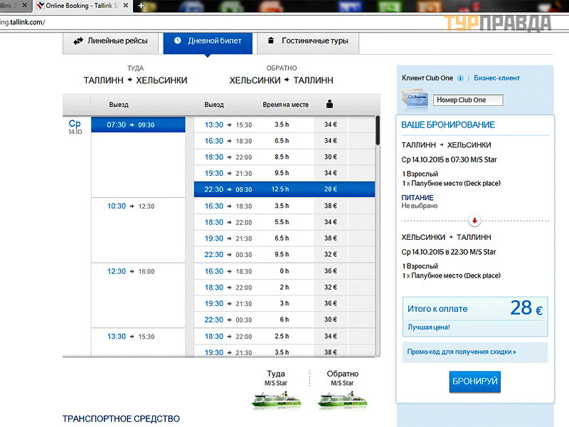 На сайте "Tallink" можно выбрать подходящее время круиза.