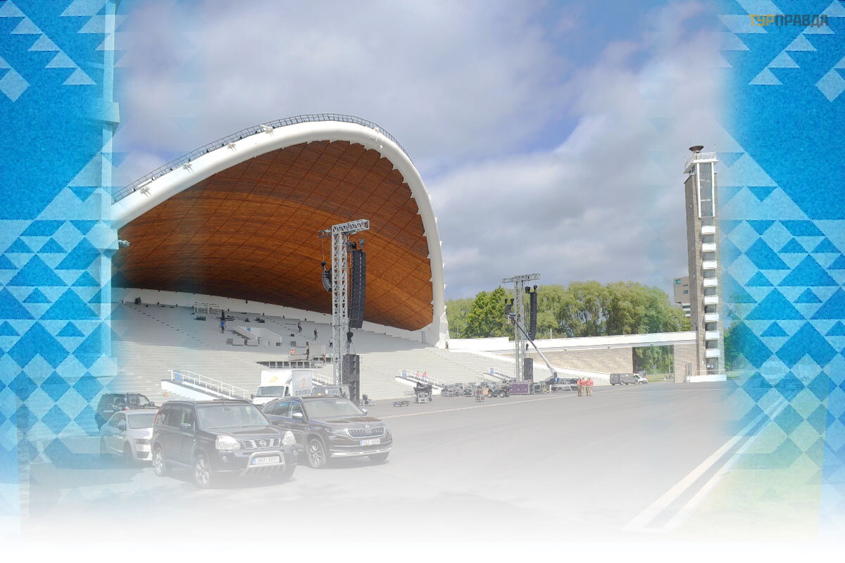Przygotowania do festiwalu na scenie gł ó wnej Festiwalu Piosenki - Teren Festiwalu Piosenki. Scena został a zbudowana w 1959 roku specjalnie na Ogó lnoestoń skie Festiwale Piosenki i moż e pomieś cić.15 000 wykonawcó w. Opró cz wystę pó w artystó w ludowych, Tallin Song Festival Grounds goś cił tak legendarnych wykonawcó w jak Michael Jackson i Lady Gaga. Trochę historii: pierwszy estoń ski festiwal piosenki odbył się w 1869 roku w mieś cie Tartu. Jej inicjatorem był Johann Voldemar Jannesen, postać kultury, twó rca dziennikarstwa estoń skiego.