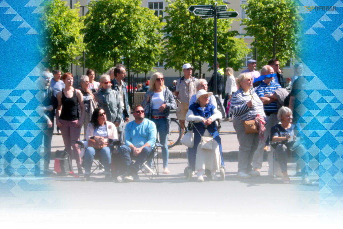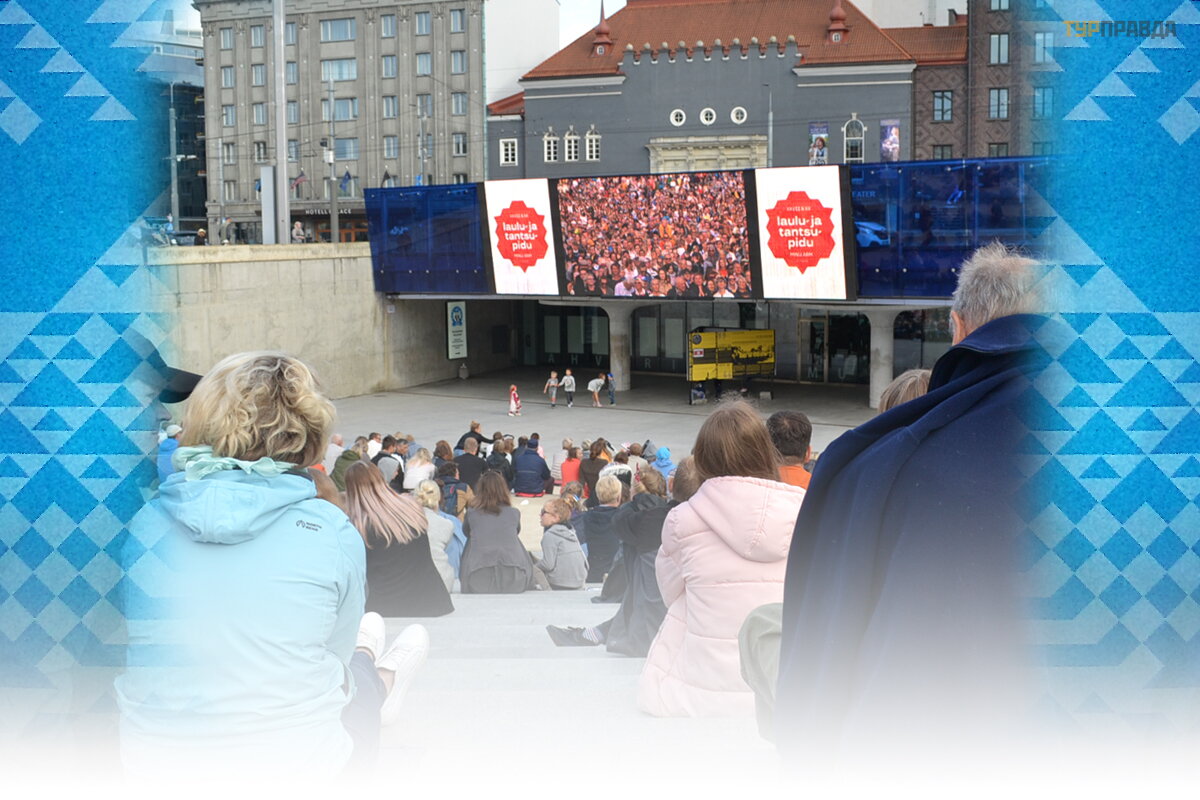 Ludzie oglą dają transmisję na ż ywo z Festiwalu Piosenki na Placu Vabaduse w Tallinie, 7 lipca 2019 r. Ż yczę wszystkim przyjemnych podró ż y i ż ywych wraż eń !