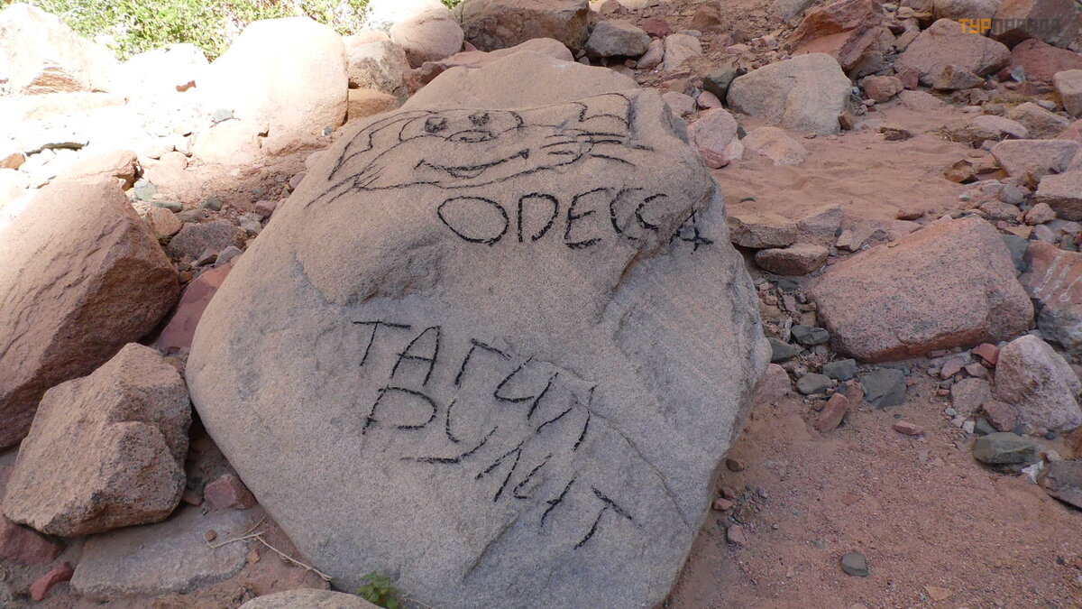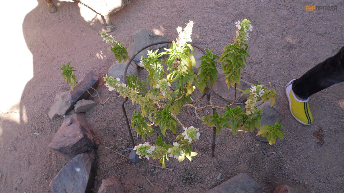 Сафари - ну такое... Минут 10 покатались, потом прошлись между красных и желтых изрезанных горных пород. Я сфотала верблюжью колючку, разрисованный жителями Тагила камень, еще какую-то скудную растительность. На красной скале нам показали типа золотые вкрапления. Я потерла из рукой - обычная желтая пыль, но издали действительно смотрится как золото. А еще на камне сидел унылый бедуин. Видимо, он тоже поехал на экскурсию, ибо целый день мозолил нам глаза на каждой остановке.