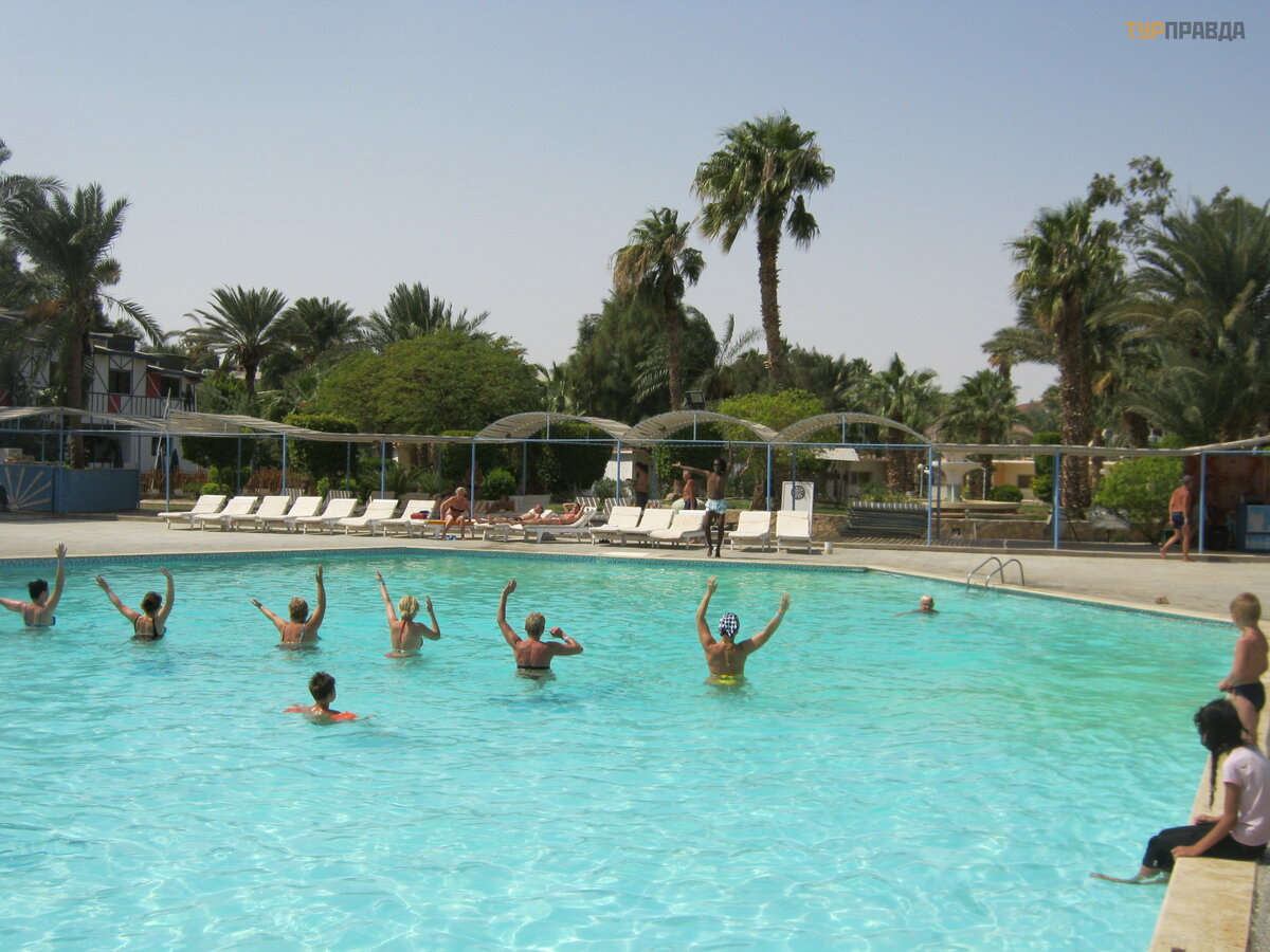 W hotelu mieszkał o 70% Rosjan, 20% Ukraiń có w i 10% miejscowych Egipcjan. Oznacza to, ż e ję zykiem mó wionym w hotelu jest rosyjski. Ich all inclusive obejmuje trzy posił ki dziennie i bar przy basenie rano, popoł udniowy bar na plaż y i budynek administracyjny wieczorem. Jest animacja: aerobik w wodzie, taniec, siatkó wka, wieczorne wystę py i wycieczki za dopł atą do klubó w nocnych na dyskoteki wraz z animatorami na hotelowym minibusie. Ogó lnie rzecz biorą c, kto przyszedł po co: ktoś kwaś ny aż do sinizny na twarzy, ktoś tań czył do rana na dyskotekach, a wię kszoś ć opalał a się , pł ywał a, jeź dził a na wycieczki i trochę ć wiczył a swoje ciał a.