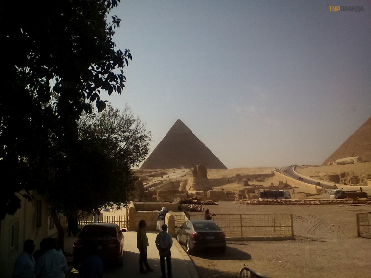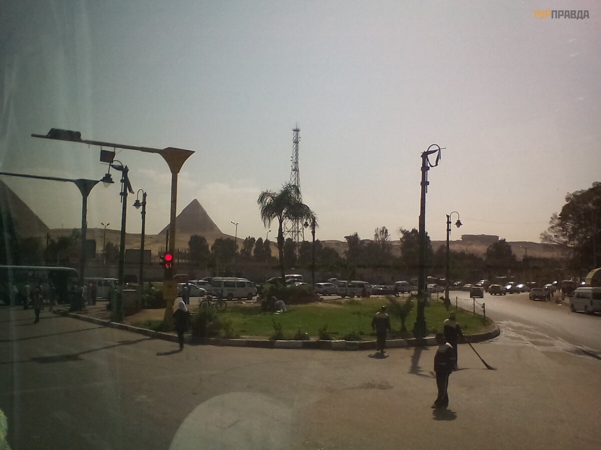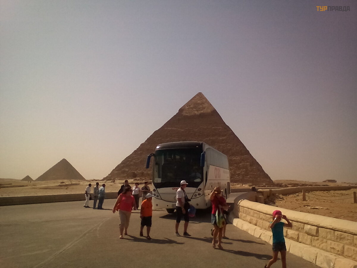 Po przybyciu na teren kompleksu turyś ci proszeni są o opuszczenie autobusu i zabranie wszystkich swoich rzeczy, w tym pudeł ek na lunch. Wszystko prześ wituje, jak na lotnisku, a my jesteś my prowadzeni przez wykrywacze metalu wedł ug tej samej procedury. Nastę pnie jadą do trzech znanych wszystkim piramid (jest ich 10 w regionie Gizy).