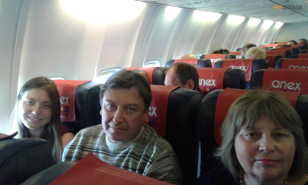 Nadszedł czas rejestracji. Teraz na swoich czarterowych skrzydł ach lata „Anex”, linia lotnicza „AzurAvia”. Samolot to Boeing, podobno po remoncie Amerykanie nie nakł adają sztucznej skó ry na siedzenia. Jestem zadowolona, ż e moje nogi mieszczą się mię dzy rzę dami i ż e był o mi wygodnie, chociaż nie zawsze tak jest.