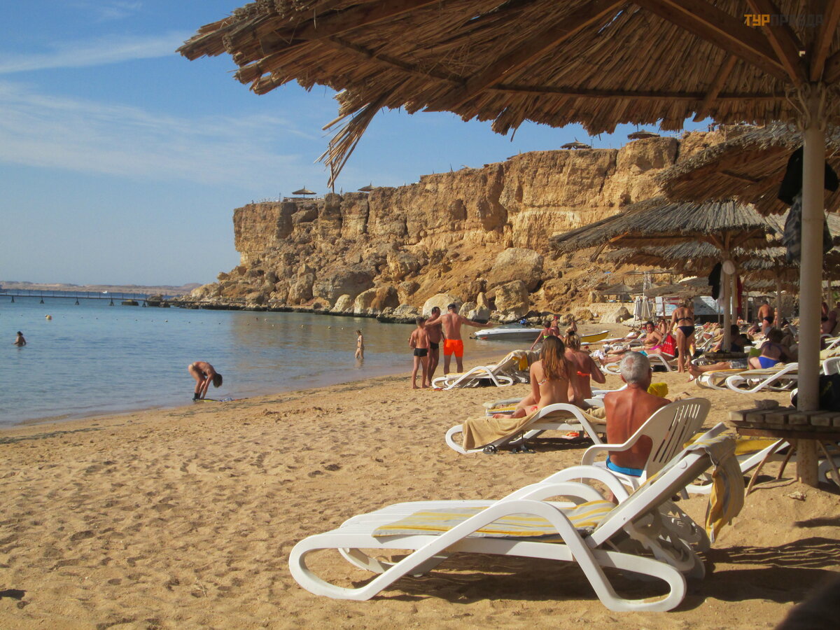 Wychodzimy nad morze wcześ nie rano. Rę czniki plaż owe są wydawane w pobliż u Coral Pool na karty, rę czniki są cał kiem nowe (kiedyś był o gorzej). Nastę pnie schodzimy w dó ł i schodzimy nad morze. Zejś cie do morza, jak bohaterowie: w prawo idziecie - schody wydeptane tysią cami turystó w, obok baru i Grilla - restauracji, w lewo - ł agodna droga, niosą piwo i napoje do baru wzdł uż niego i na wprost – schody, któ re jeszcze nie został y „oddane do uż ytku” i prowadzą przez plac budowy, ale najkró tsze. Tutaj zeszliś my wzdł uż niej na plaż ę .