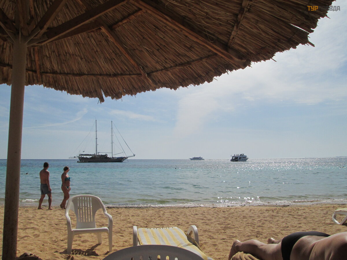 Morze. Wybrzeż e jest piaszczyste, gdzieś od gł ę bokoś ci do pasa zaczyna się pierwszy grzbiet rafy, ale jest praktycznie martwy, ż ywych koralowcó w jest bardzo mał o, ale są ryby. Mojej ż onie podobał o się to miejsce, ż e nie ma ś ciany z duż ą gł ę bokoś cią , ale są ryby, nawet dopł ywa do brzegu. Dalej jest piaszczyste dno z ł atami koralowymi, a nastę pnie gł ó wna rafa, na któ rej ż yją koralowce. Rafa jest bardzo dobra, przypł ywają do niej ł odzie i jachty z innych miejsc w Sharm, z wycieczkami do nurkowania. Pozostają w drodze do 15:00.