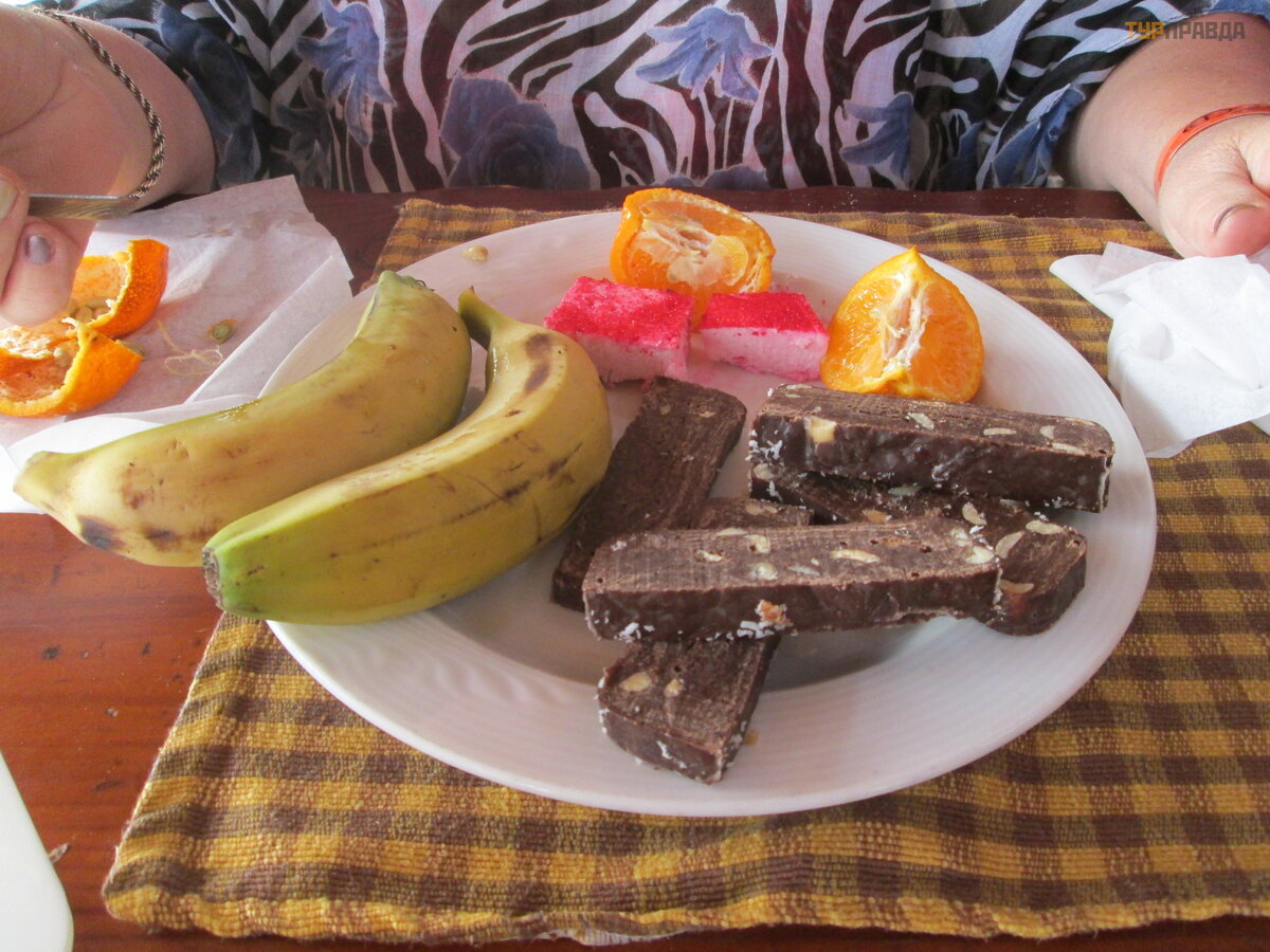 A wię c europejskie ś niadanie – jajecznica, omlety, krojone kieł baski, sery, sał atki, warzywa, ciasta, naleś niki, gofry typu belgijskiego. Musli, mleko, soki, herbata, kawa. Do obiadu 4-5 dań mię snych i rybnych, dodatki (ryż , ziemniaki itp. ), 2 rodzaje zup - puree ziemniaczane, ró ż ne sał atki, makarony, znowu ciasta, na obiad w restauracji dodatkowo piwo butelkowe. Napoje wlewa się do plastiku (200 gr. kubki). To zabawne widzieć mę ż czyzn, któ rzy noszą te kubki bez koń ca. Kolacja jest podobna do obiadu, są ciekawe dania - marynowana jagnię cina, smaż ony kurczak, kebaby, faszerowane czymś warzywa. Oczywiś cie - owoce, banany, daktyle. Kró tko mó wią c, nie mogę uwierzyć , ż e ktokolwiek pozostaje gł odny. Dla dzieci i kobiet duż y wybó r ż elek i musó w. Porcjowane dania leż ą na talerzach szefa kuchni, ale nie pamię tam, ż eby odmó wili dodania czegokolwiek. Oczywiś cie nie ma foie gras, czerwonej ryby, kawioru, homaró w i homaró w, ale kucharze też pró bują w domu, chyba nie ma takiego wyboru. I myś lę , ż e jest też kryzys w Egipcie, wię c w tym jest czę ś ć ich problemó w.