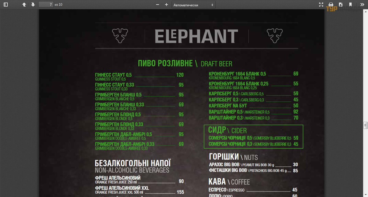 А вот когда чемоданы запаковали – внутри Аэропорта есть несколько кафешек и есть разливное пиво, например, в Баре « Elephant Pub» есть пиво Guinness (120 грн. за 0.5л), а так же есть также черничный сидр на разлив (59 грн. за 0.5л): и то и то рекомендуем – всё здорово.