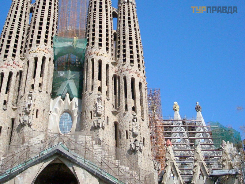 Katedra został a zał oż ona w 1882 r. , a od 1891 r. kierownikiem prac został Gaudi. Gł ó wna bazylika miał a być olbrzymia dla 15 tysię cy wiernych, wysokoś ć gł ó wnej wież y wynosił a 170 metró w. Do czasu swojej ś miesznej ś mierci Gaudi zbudował tylko jedną fasadę , Fasada Narodzenia, pó ł wieku pó ź niej Fasada Mę ki Pań skiej został a ukoń czona, a Fasada Chwał y jest wcią ż przed nami. Có ż , co opisać , trzeba to zobaczyć . Są zdję cia, ale sł owa nie wystarczą do opisania. Dalej, w tempie, do budynkó w przy Gracia Avenue
