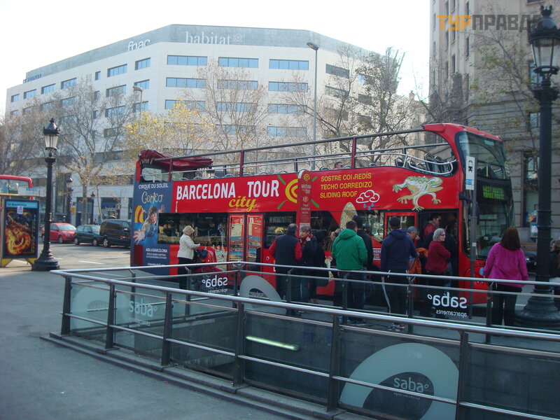 Jest przystanek i Bus Turistik, autobus kursują cy na trzech trasach, krą ż ą cy wokó ł zabytkó w Barcelony. Koszt to okoł o 25 euro za osobę . Ale docieramy do punktu począ tkowego naszej trasy - Sagrada Familia metrem (3.5 euro / osobę ).