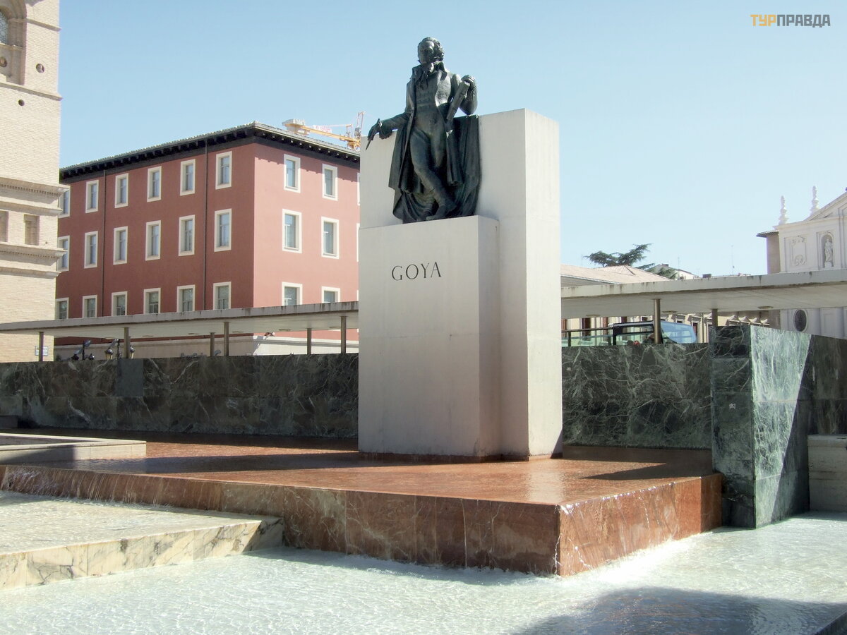 Храм расписывал в том числе и великий Гойя, уроженец этих мест. На площади, рядом с храмом ему поставлен памятник. Огромный храм поражает искуссно вырезаным позолоченным алтарем.