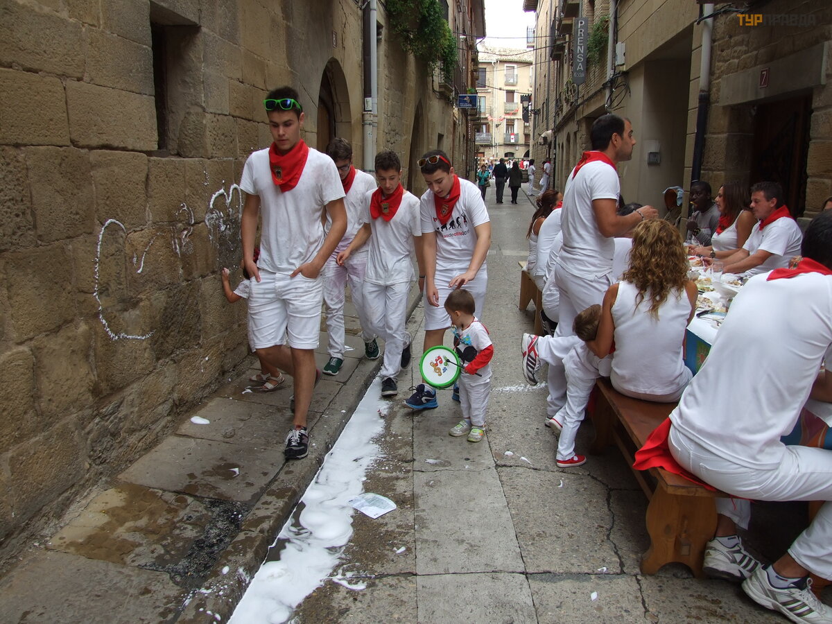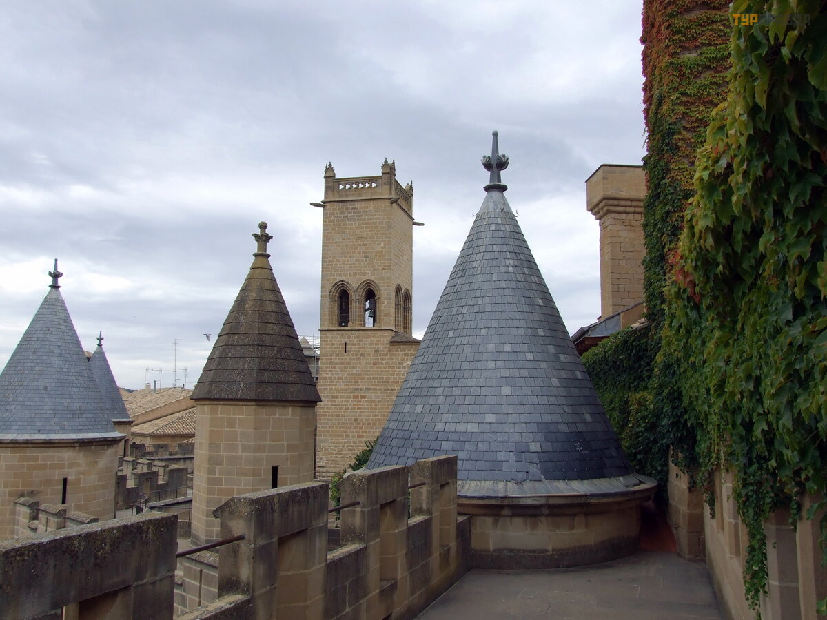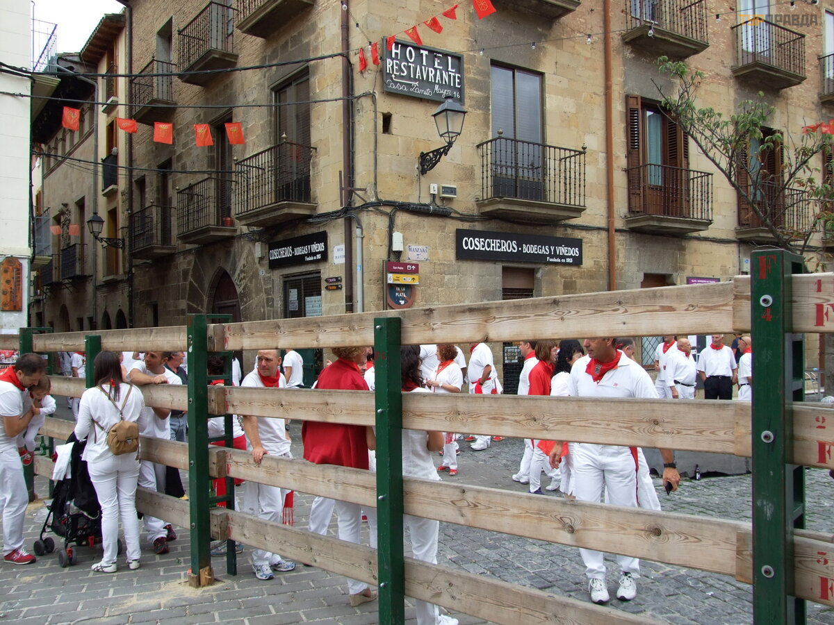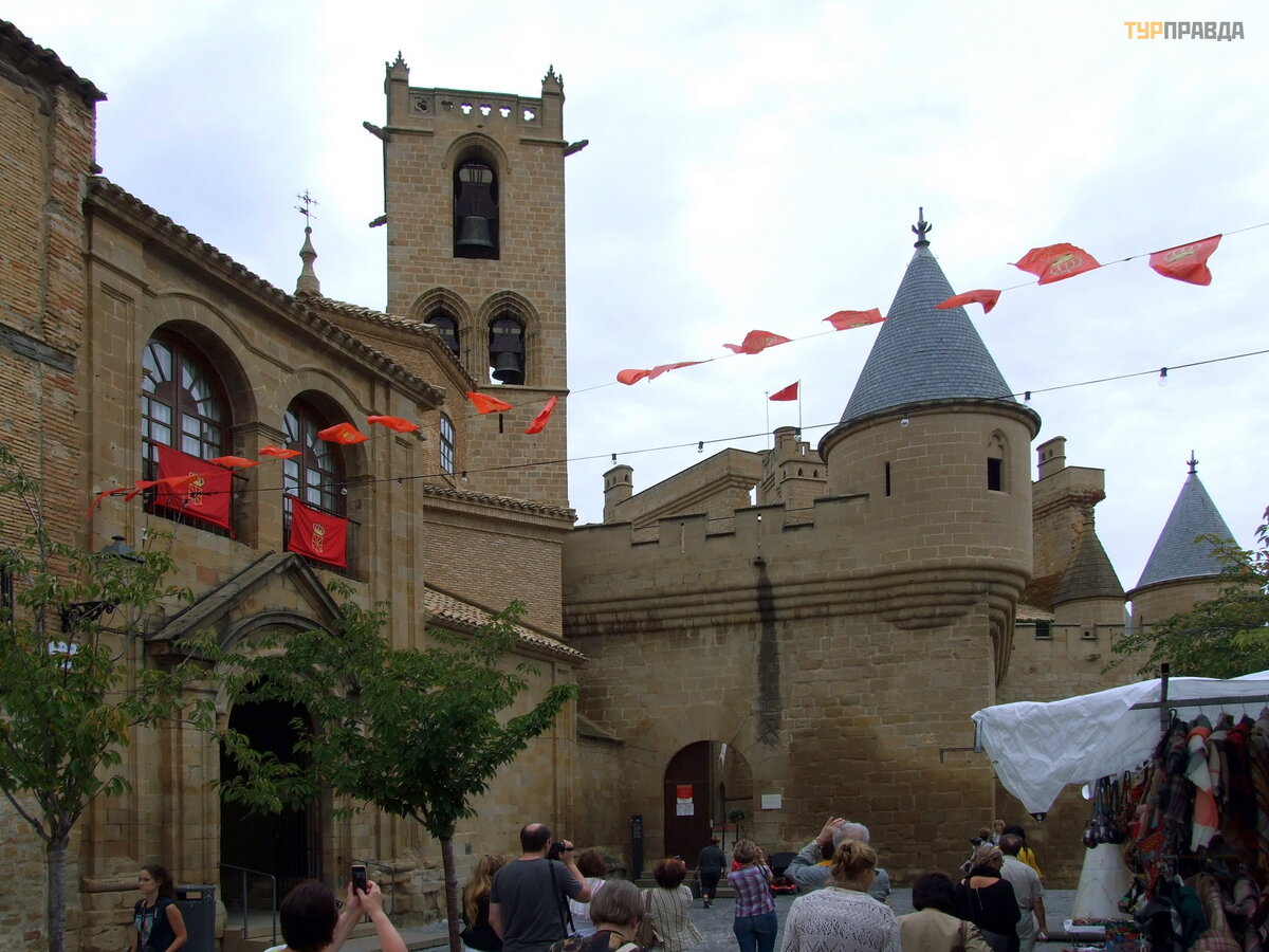 Далее наш путь лежал в Олите - столицу Наварры. Жаль что опоздали на Энсьерро (бег с быками). В испании не только в Памплоне они проводятся, а в нескольких городах. Улицы огораживают заборами из жердей, а участники ходят в белых одеждах с красными поясами, символизирующие кровь. Потом они шумно отмечают свои забеги в местных кафешках. Количество быков и забегов
