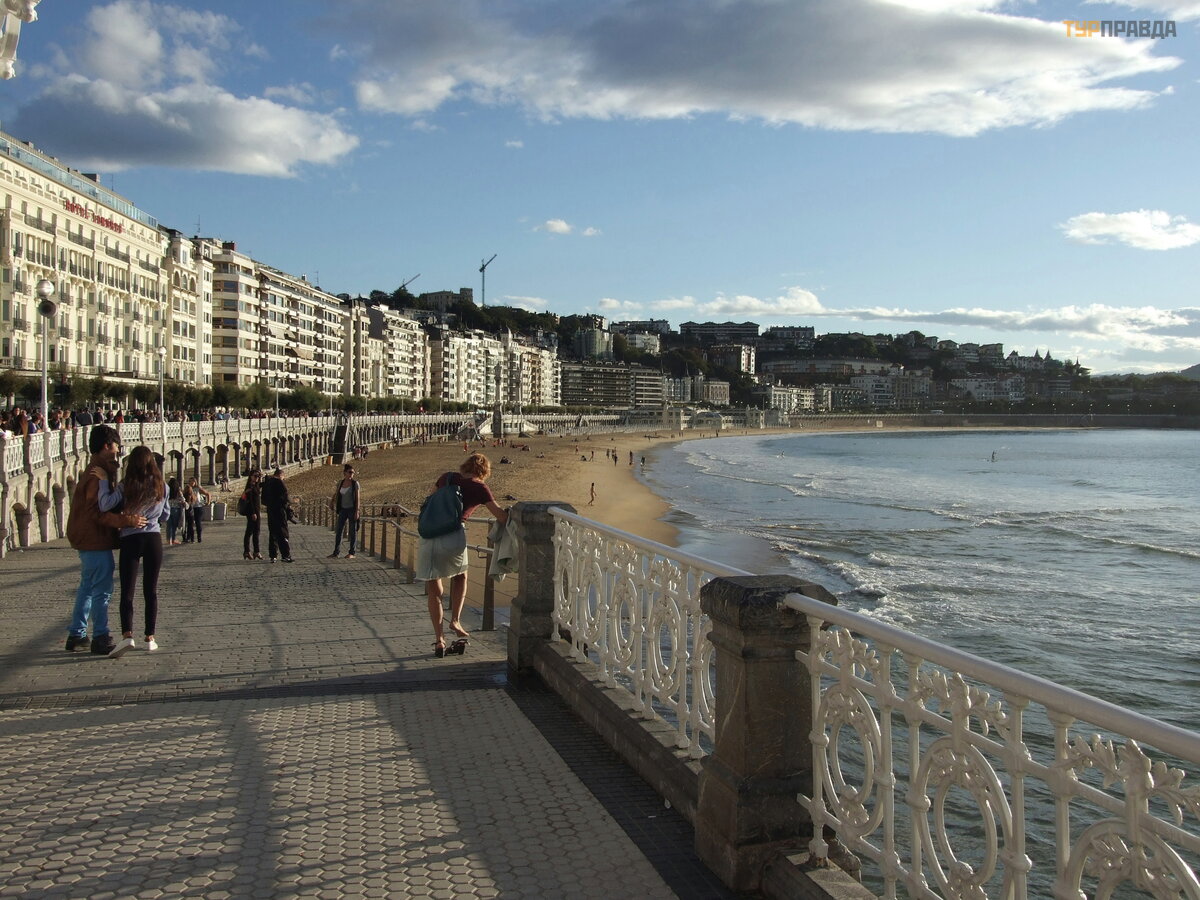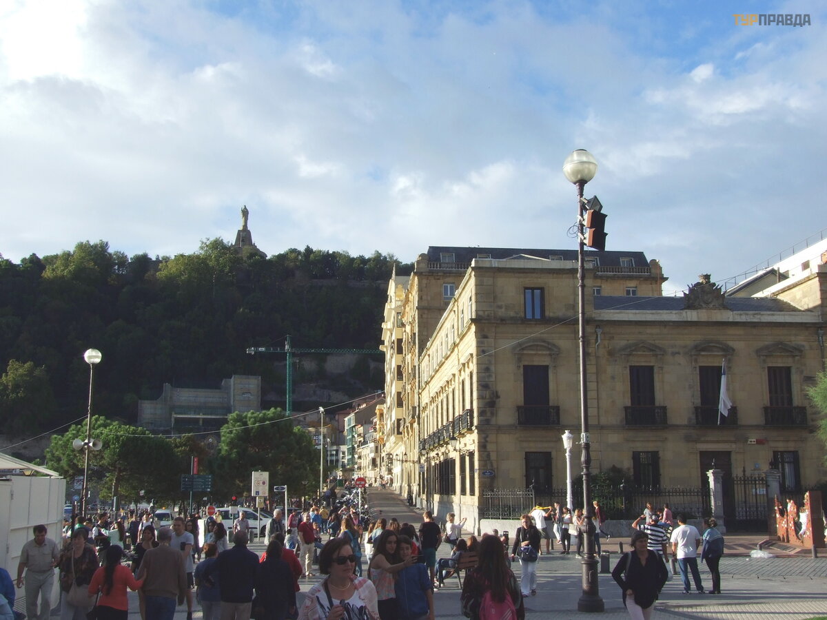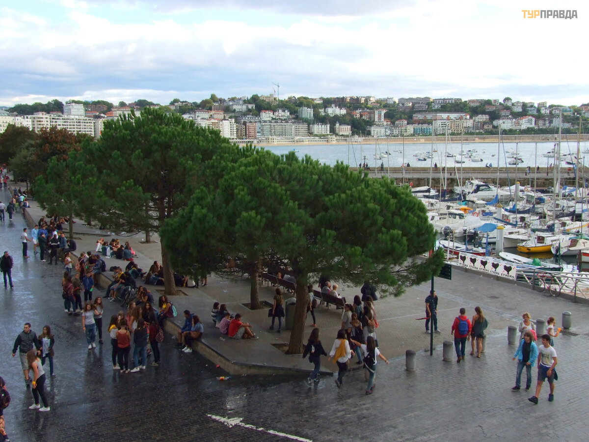 Сан-Себастьян безусловно один из красивейших городов Испании. В этот день (воскресенье) там была настоящая гульба на всю катушку. Все пили сидр, который на Севере Испании очень популярен. В популярных кафе считается хорошим тоном бросать стаканчики на пол, подчеркивая статус заведения. Зрелище для нас довольно неприятное, идешь буквально по мусору. Поразило огромное количество пьющих детей. Нам объяснили, что дети города заключили что-то вроде договора с администрацией и родителями, что в воскресенье отрываются как хотят до полуночи.