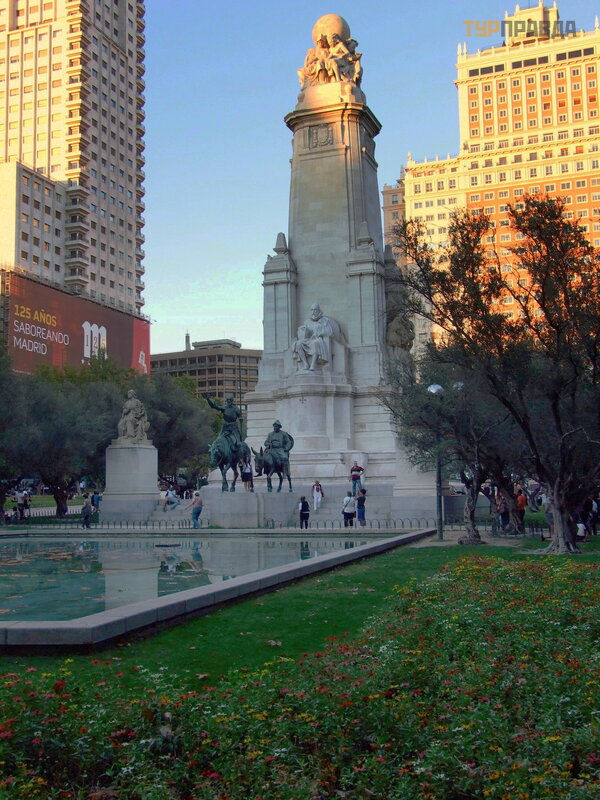 No có ż , wieczorem dotarliś my do Madrytu. Na Plaza de Españ a ten sam Cervantes ze swoimi nieś miertelnymi bohaterami.