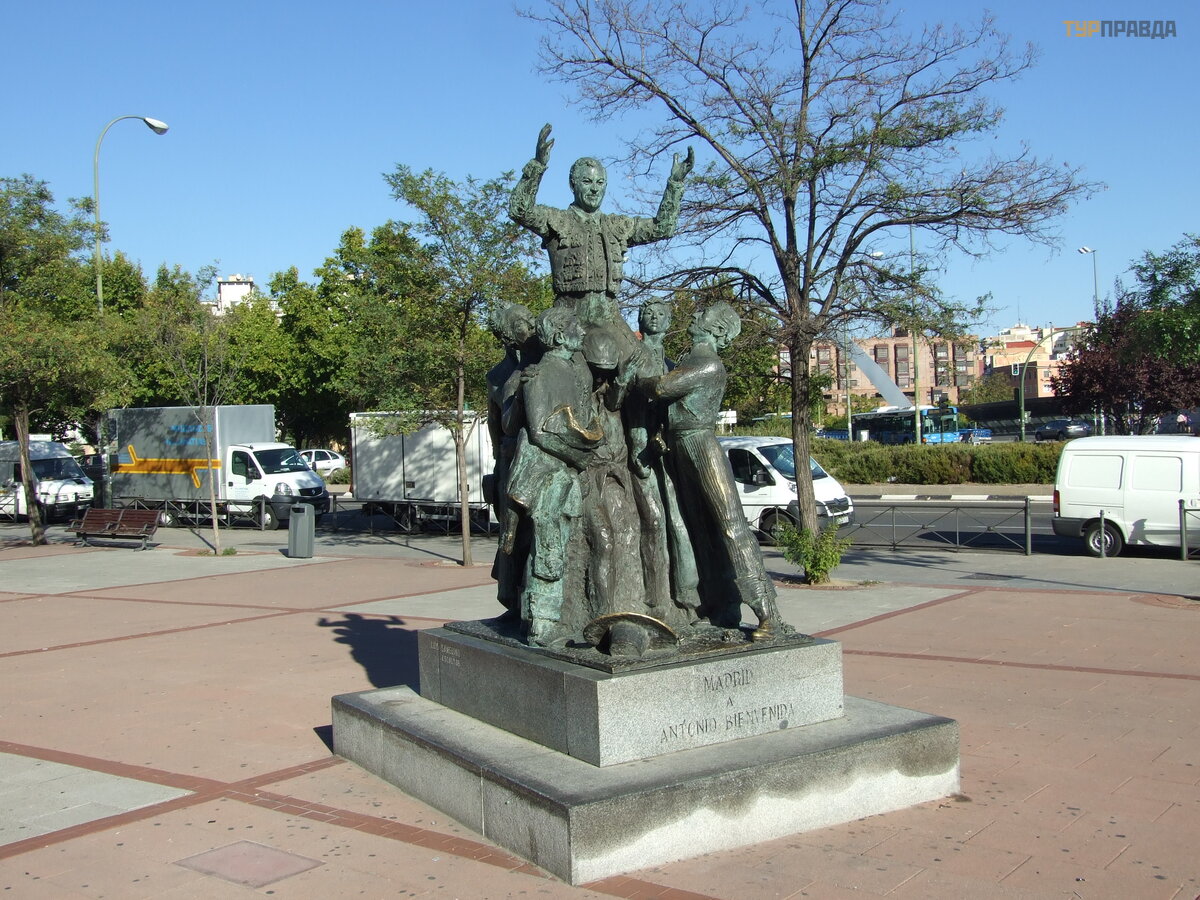 I postacie sł ynnych matadoró w w pobliż u areny walk bykó w w Las Ventas