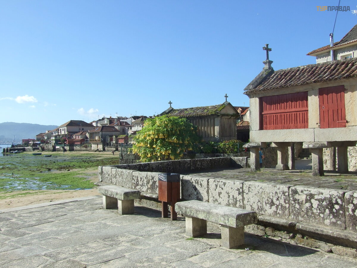 Nastę pnie dotarliś my do rybackiego miasteczka Combarro. Bardzo malownicze miejsce. Te stodoł y „orreos” został y zbudowane na sł upach, aby nie zalewał y je wodą i moż na był o ł adować i rozł adowywać towary bezpoś rednio z ł odzi.