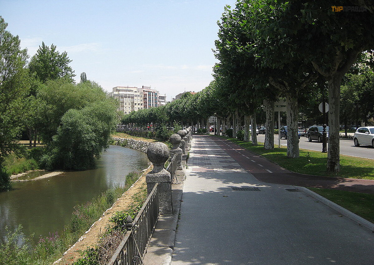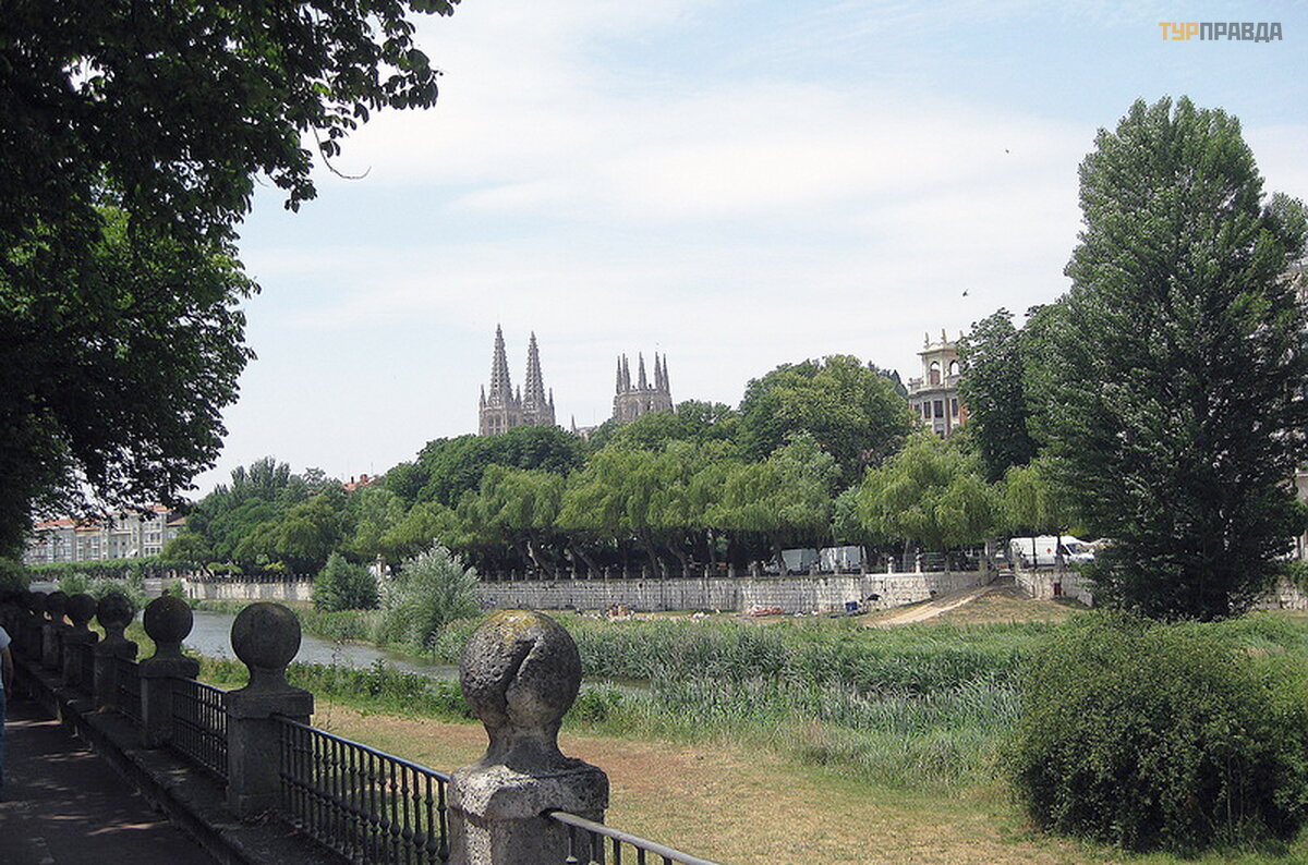 Có ż , trą bka dzwoni i jedziemy dalej do Burgos (BurgAs jest w Buł garii), przez dł ugi czas w ś redniowieczu stolicy Kastylii. Hiszpanie uważ ają Burgos za niemal biegun zimna w kraju. I nie jest jasne dlaczego, czy to miasto tam się znajduje, czy wiatr… Jednak pogoda był a ciepł a i z przyjemnoś cią oglą daliś my miasto. Oe leż y nad rzeką Arlanson, nabrzeż e przypomina malowniczy park.