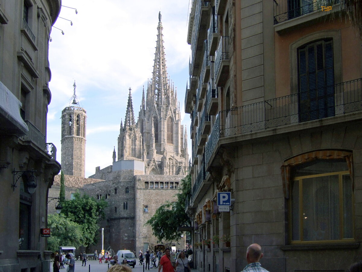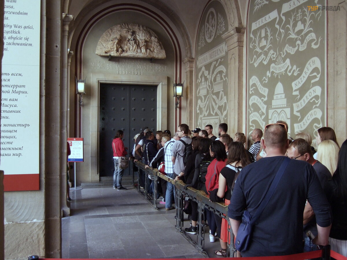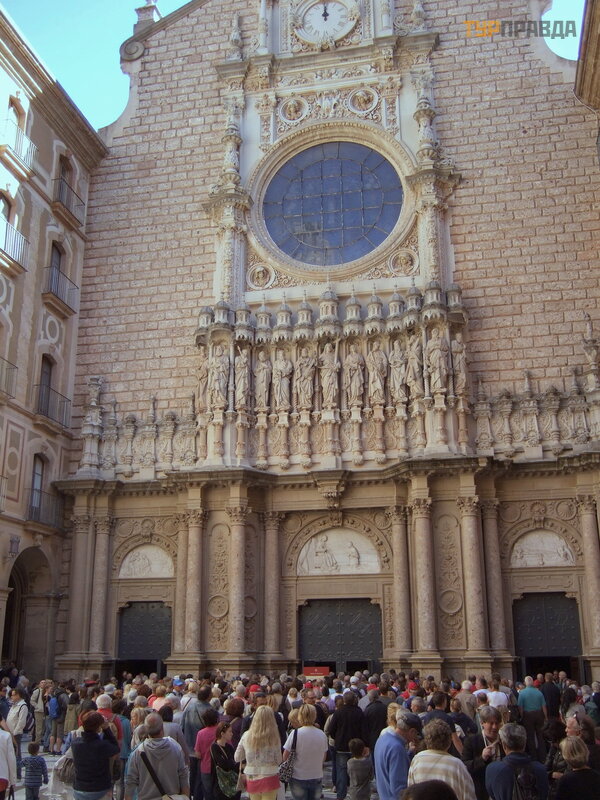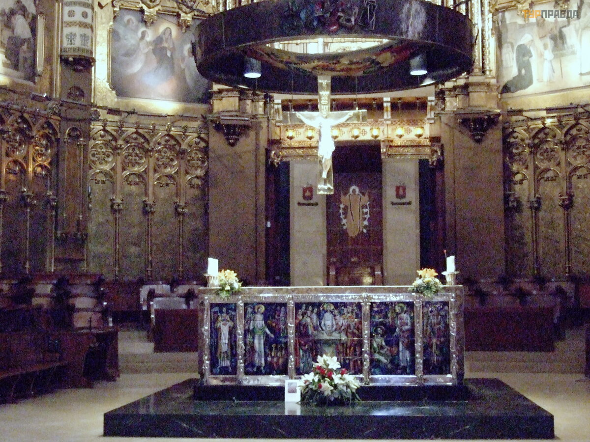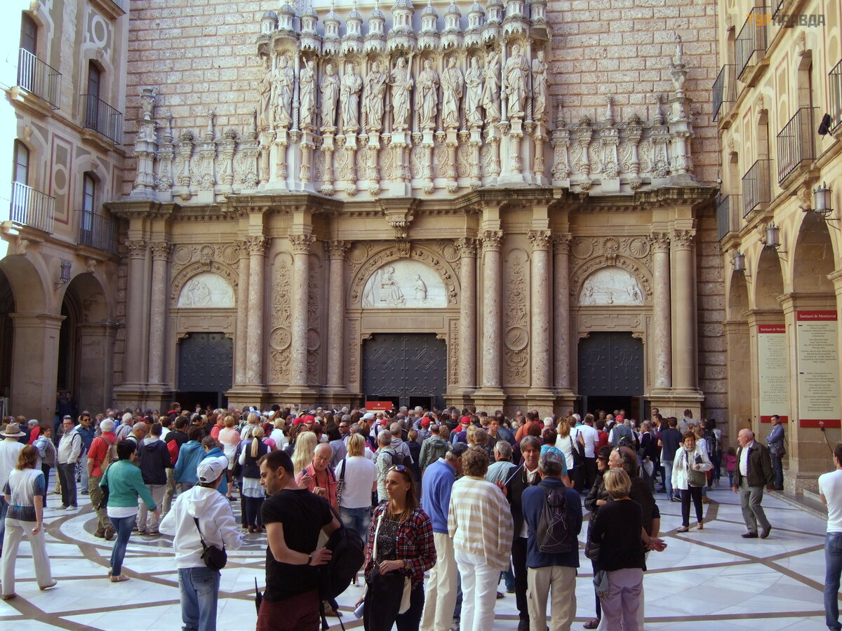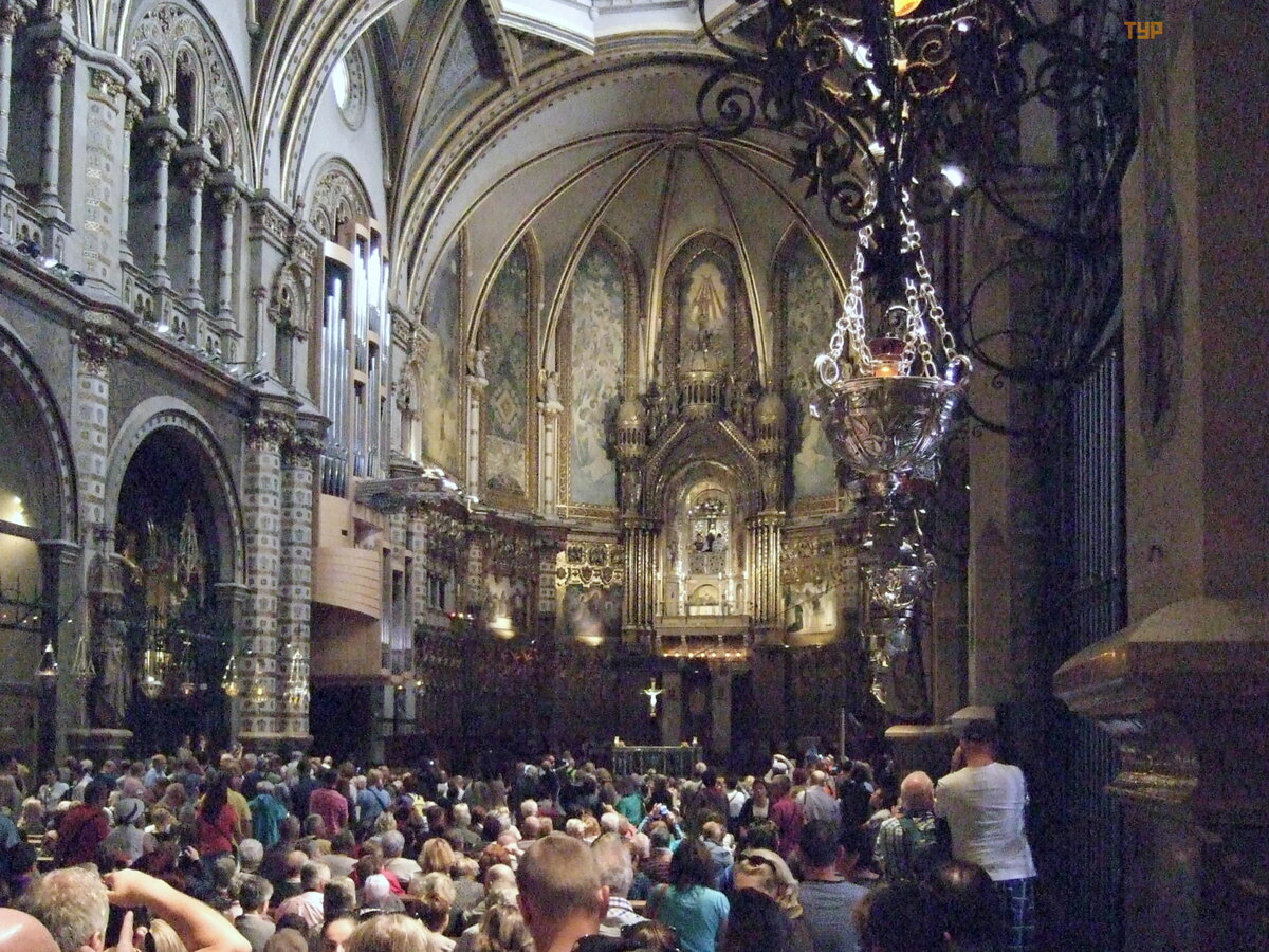 Wszyscy stoją w kolejce do Czarnej Madonny - posą g Matki Boskiej z Dziecią tkiem w ramionach, posą g otrzymał swoją nazwę od ciemnego koloru, jaki z biegiem czasu nabrał o drzewo, z któ rego został a wyrzeź biona. Katedra został a otwarta o 12-00, ale kolejka do Madonny był a jeszcze godzina. Sama Katedra (Bazylika Marii Panny z Montserrat) powstał a w XVI wieku, ale potem był a wielokrotnie przebudowywana, a nowoczesny budynek to koniec XIX wieku. W budowie katedry brali udział najlepsi hiszpań scy architekci tamtych czasó w, któ rzy losowali, kto co zaprojektował . Gaudi otrzymał krzyż na oł tarzu, któ ry wydaje się unosić w powietrzu.