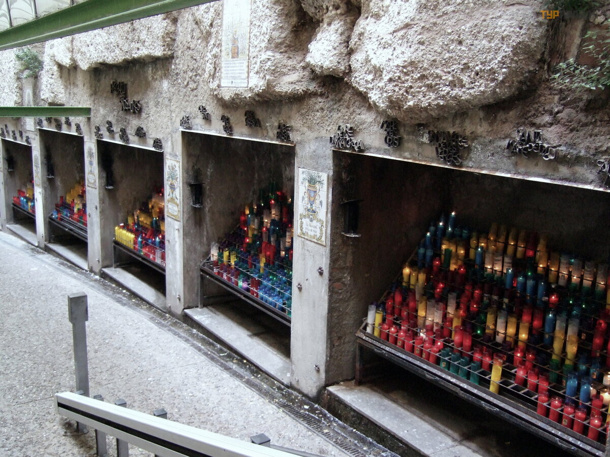 Nastę pnie ludzie idą do korytarza w skale, gdzie moż na postawić ś wiecę i czerpać wodę ś wię coną ze ź ró dł a.